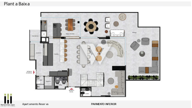 A área social é impecável, com um espaçoso living integrado à cozinha gourmet, ideal ...