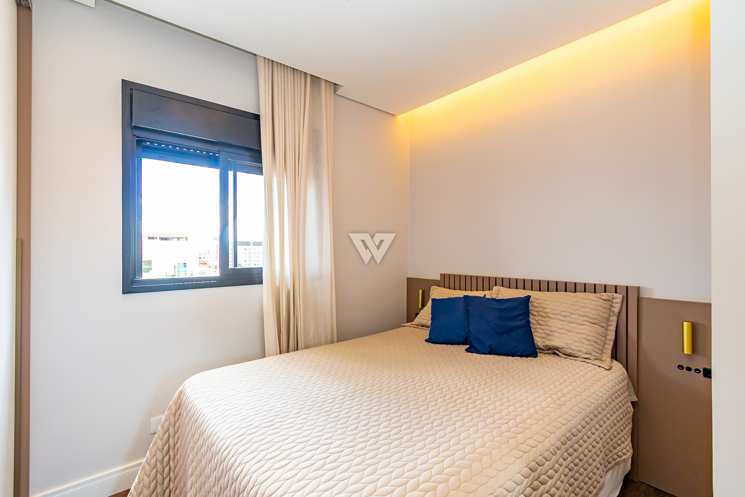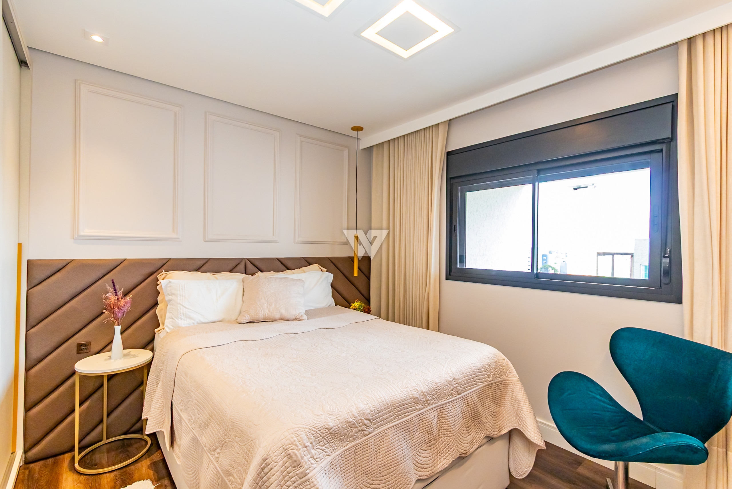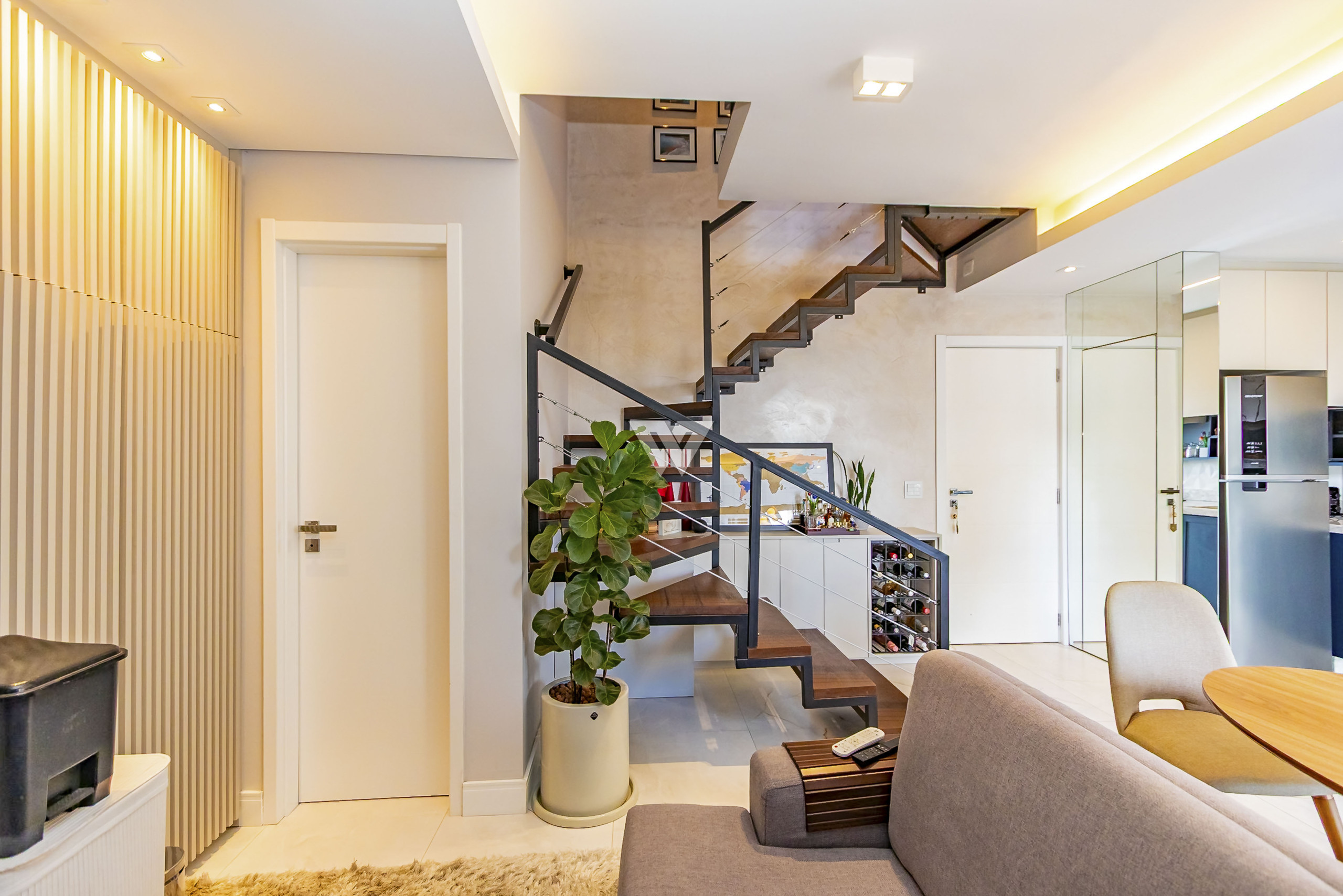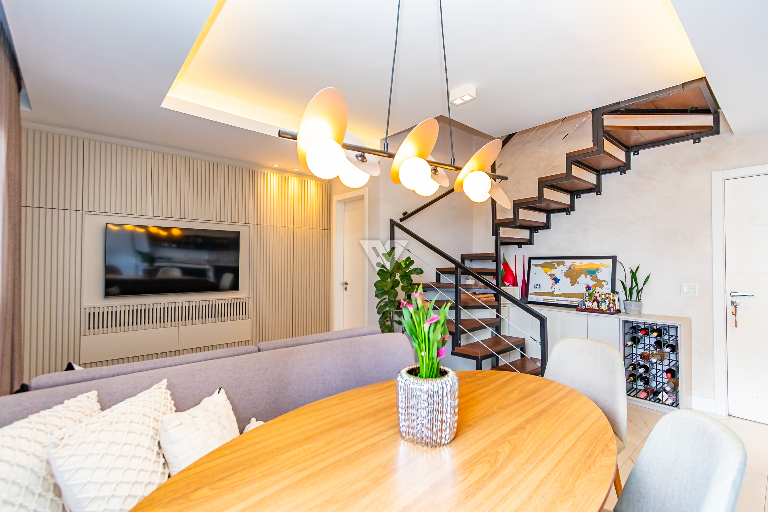 Apartamento duplex com 78,51m² privativos, distribuídos em 2 dormitórios, ambos suítes, que oferecem conforto e privacidade para você e sua família. A unidade conta com 2 vagas de garagem e um projeto de interiores assinado por André Cabral (CASACOR), com acabamentos de alto padrão. Entregue totalmente mobiliado (exceto eletrodomésticos e televisores), o imóvel possui churrasqueira a carvão na sacada, cozinha com bancada em mármore Branco Paraná, persianas embutidas nos quartos, aquecedor de toalhas na suíte principal e ar-condicionado na sala e nos dormitórios.