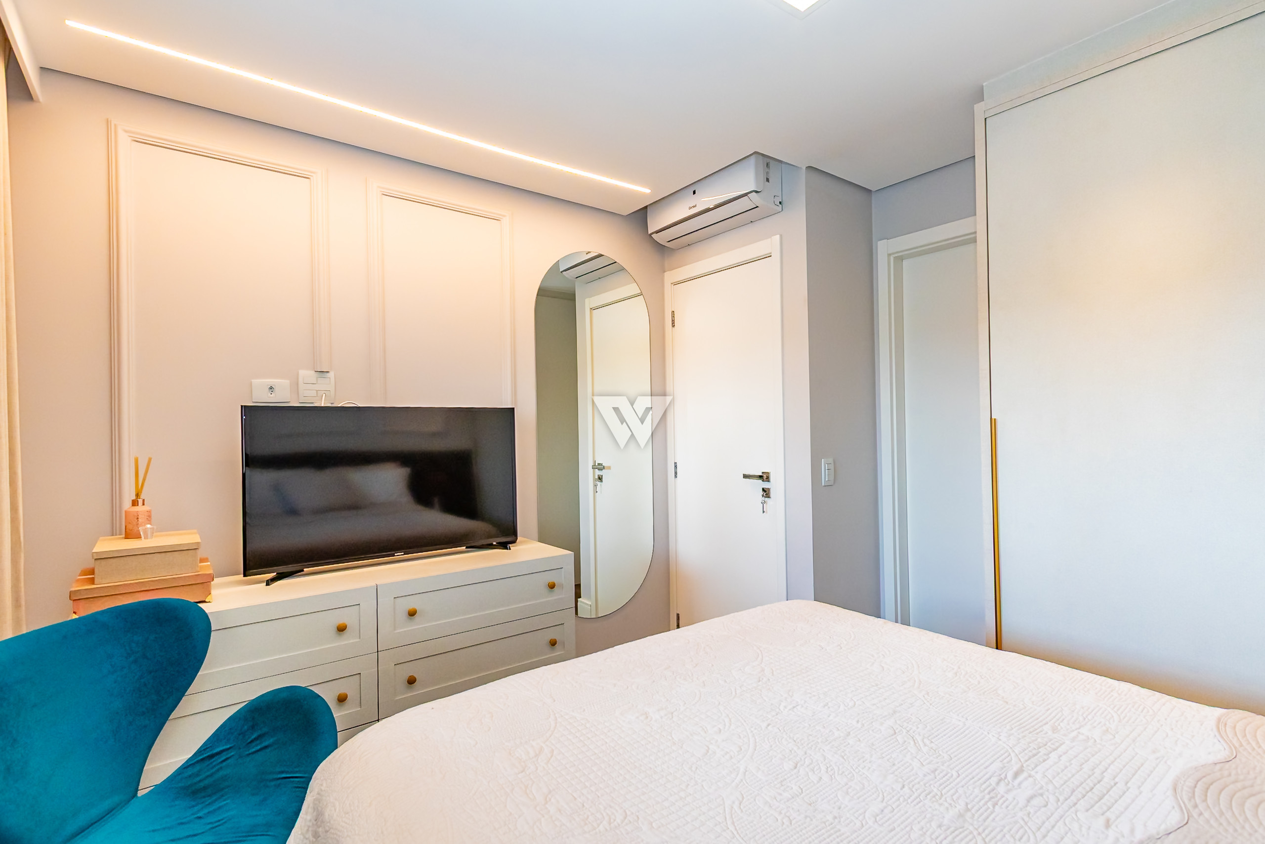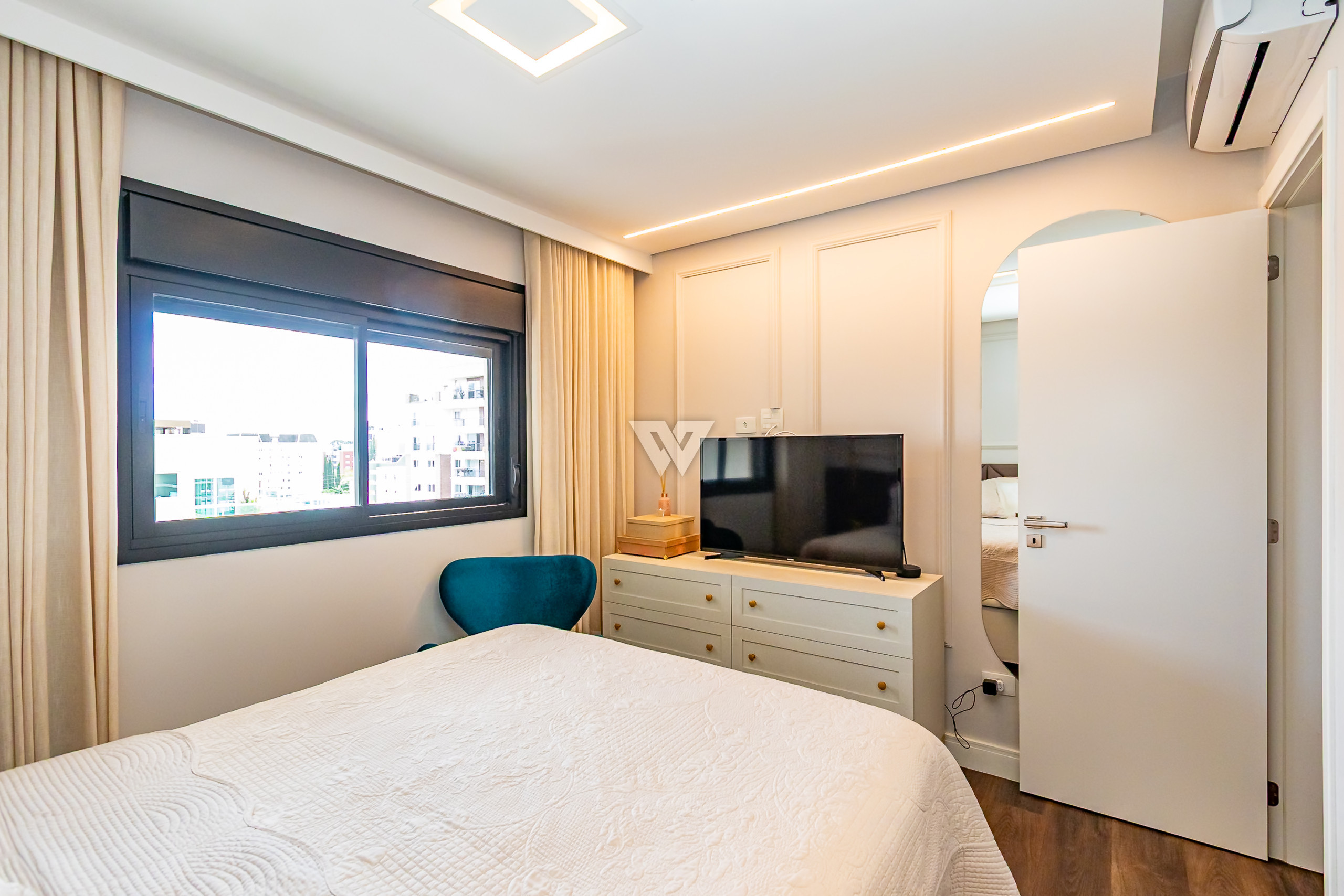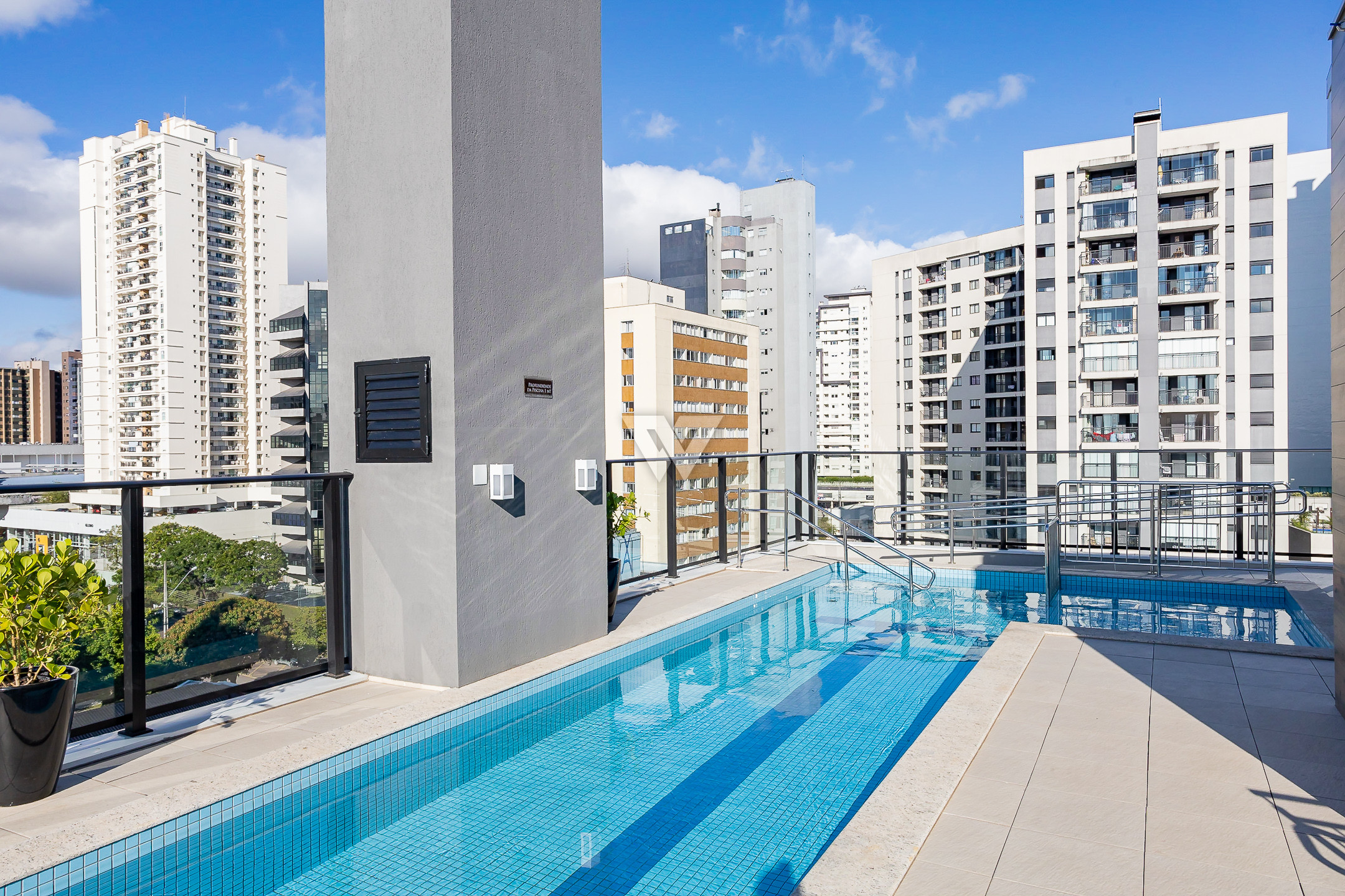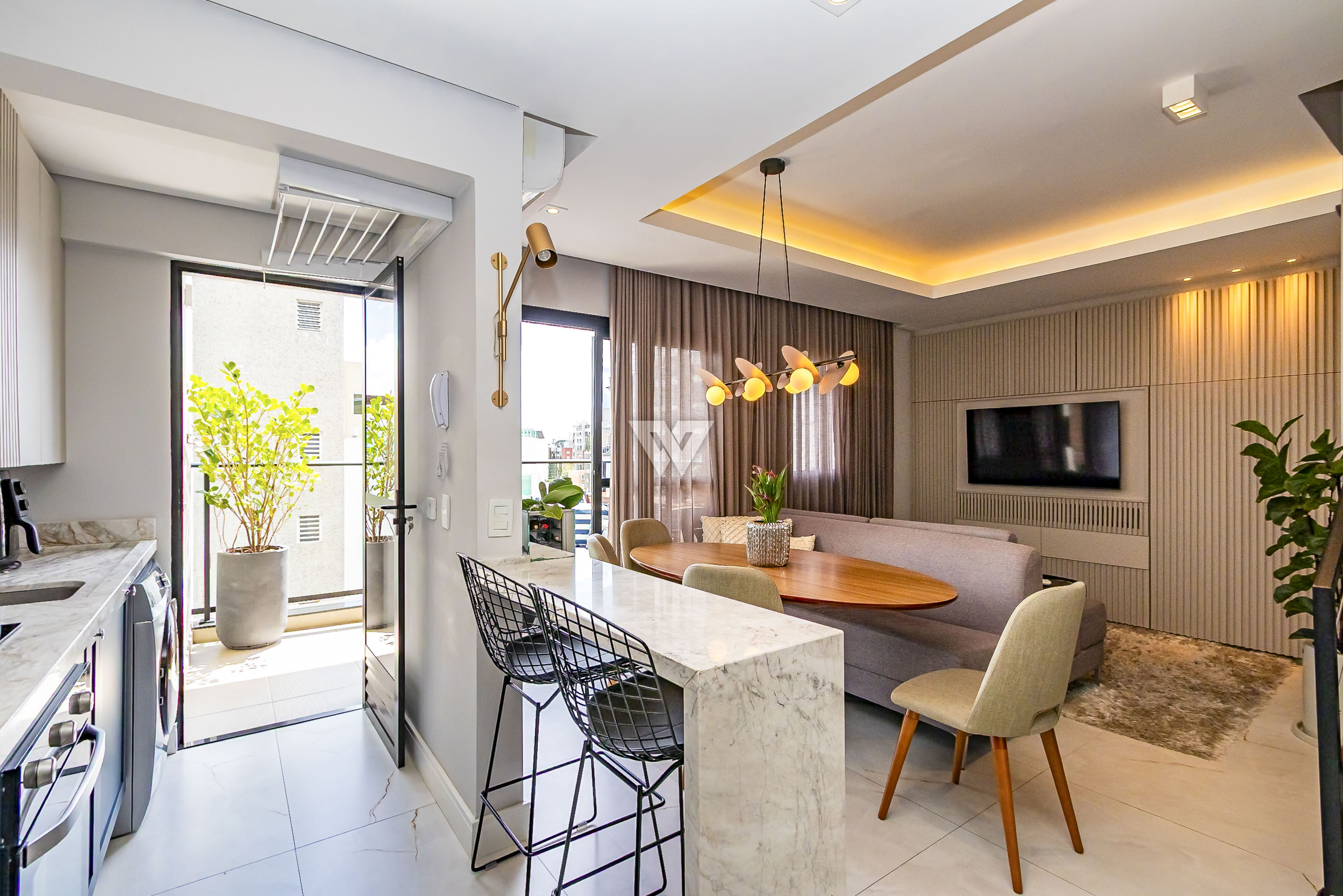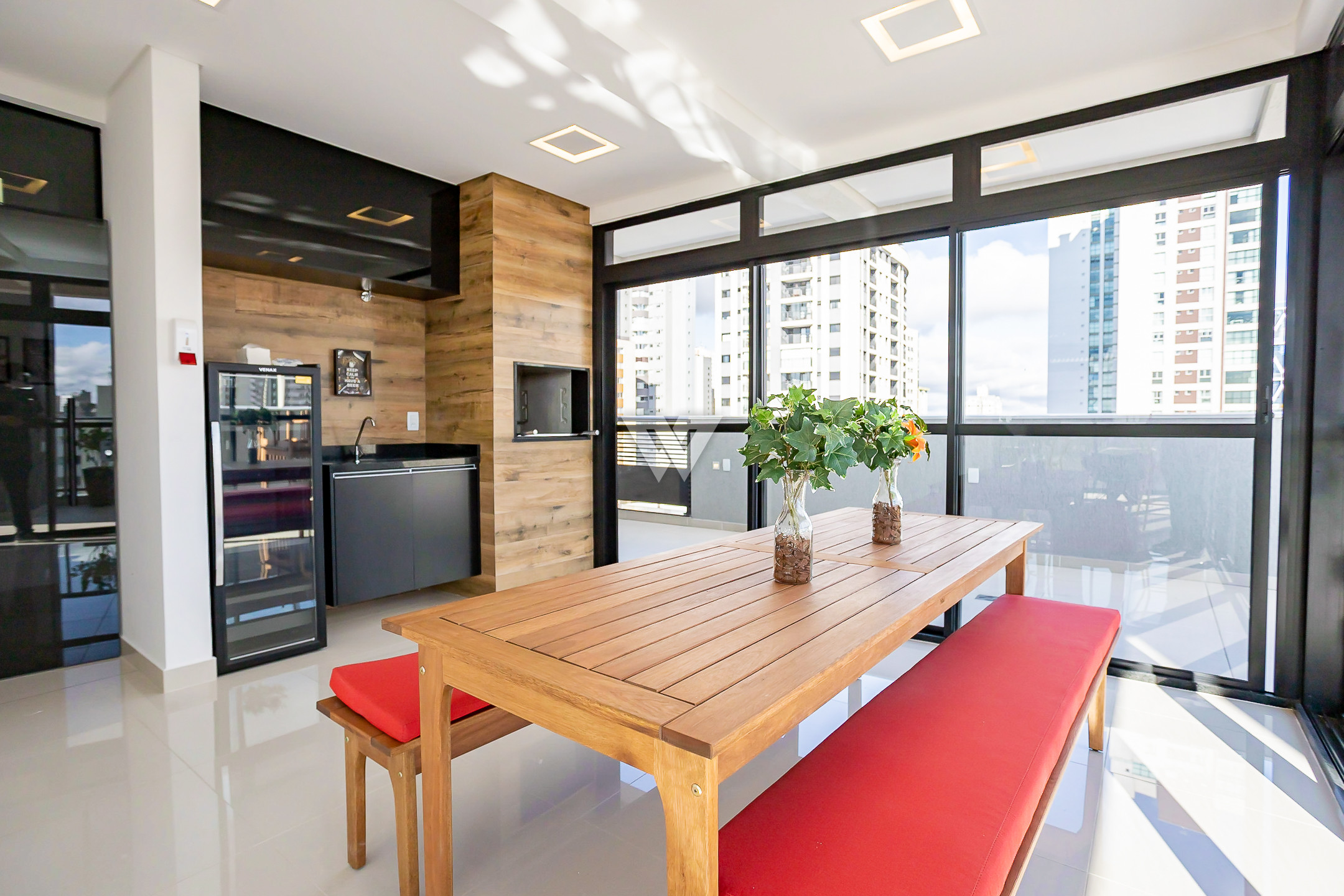 Apartamento duplex com 78,51m² privativos, distribuídos em 2 dormitórios, ambos suítes, que oferecem conforto e privacidade para você e sua família. A unidade conta com 2 vagas de garagem e um projeto de interiores assinado por André Cabral (CASACOR), com acabamentos de alto padrão. Entregue totalmente mobiliado (exceto eletrodomésticos e televisores), o imóvel possui churrasqueira a carvão na sacada, cozinha com bancada em mármore Branco Paraná, persianas embutidas nos quartos, aquecedor de toalhas na suíte principal e ar-condicionado na sala e nos dormitórios.