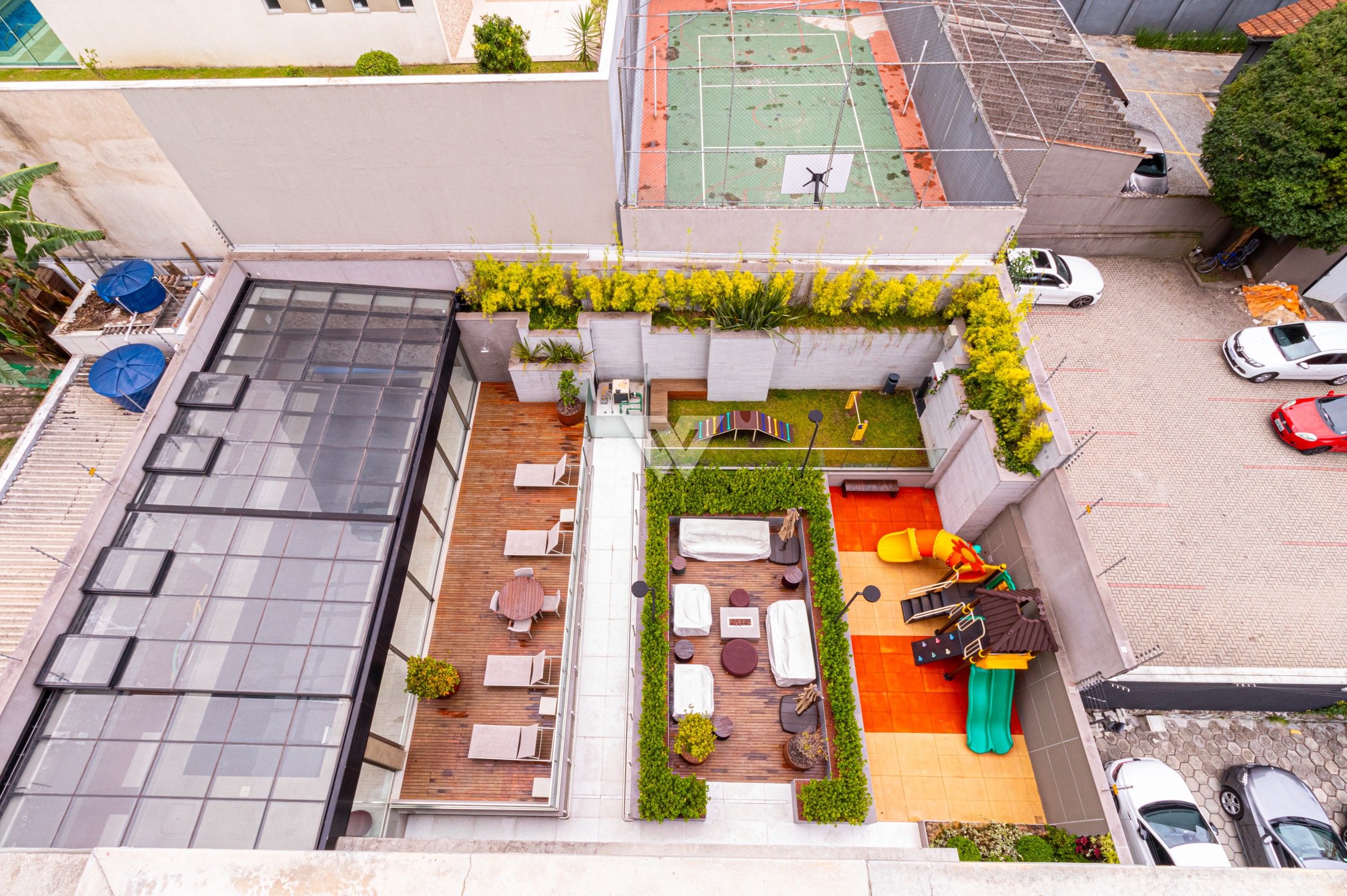 Nas áreas comuns do condomínio, você e sua família terão à disposição, salão de festas com espaço gourmet, lounge externo, brinquedoteca, academia, piscina aquecida com cobertura retrátil, deck da piscina, fireplace, playground, espaço pet, sala para motoristas, portaria com guarita blindada e porte-cochere