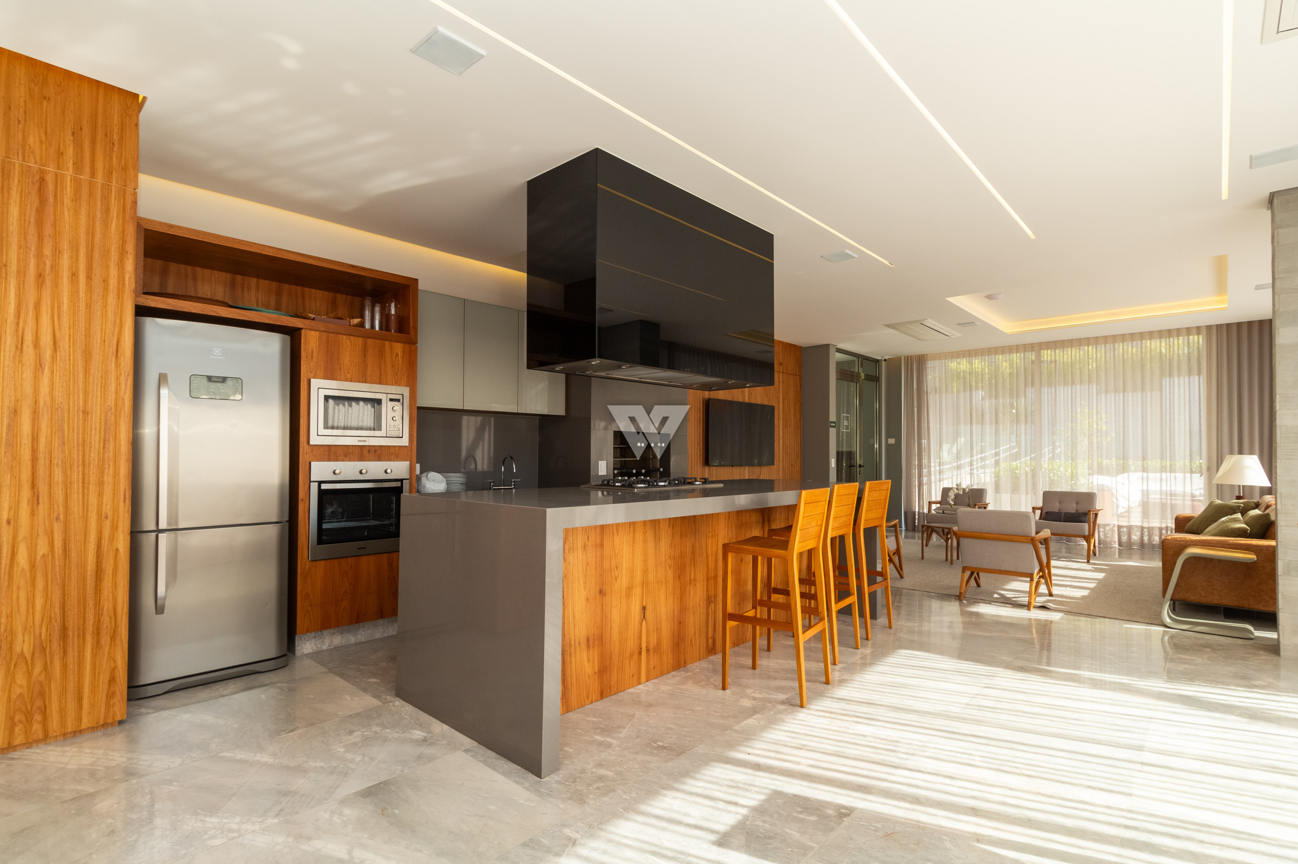 Possui como divisão interna sala para 3 ambientes, possibilidade integração com a cozinha, lavabo, área de serviço, banheiro de serviço, área técnica, despensa, 4 suítes sendo uma máster.