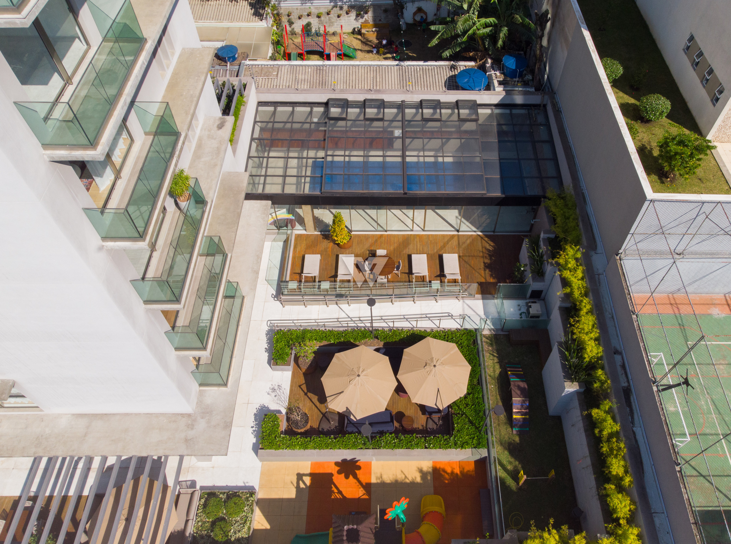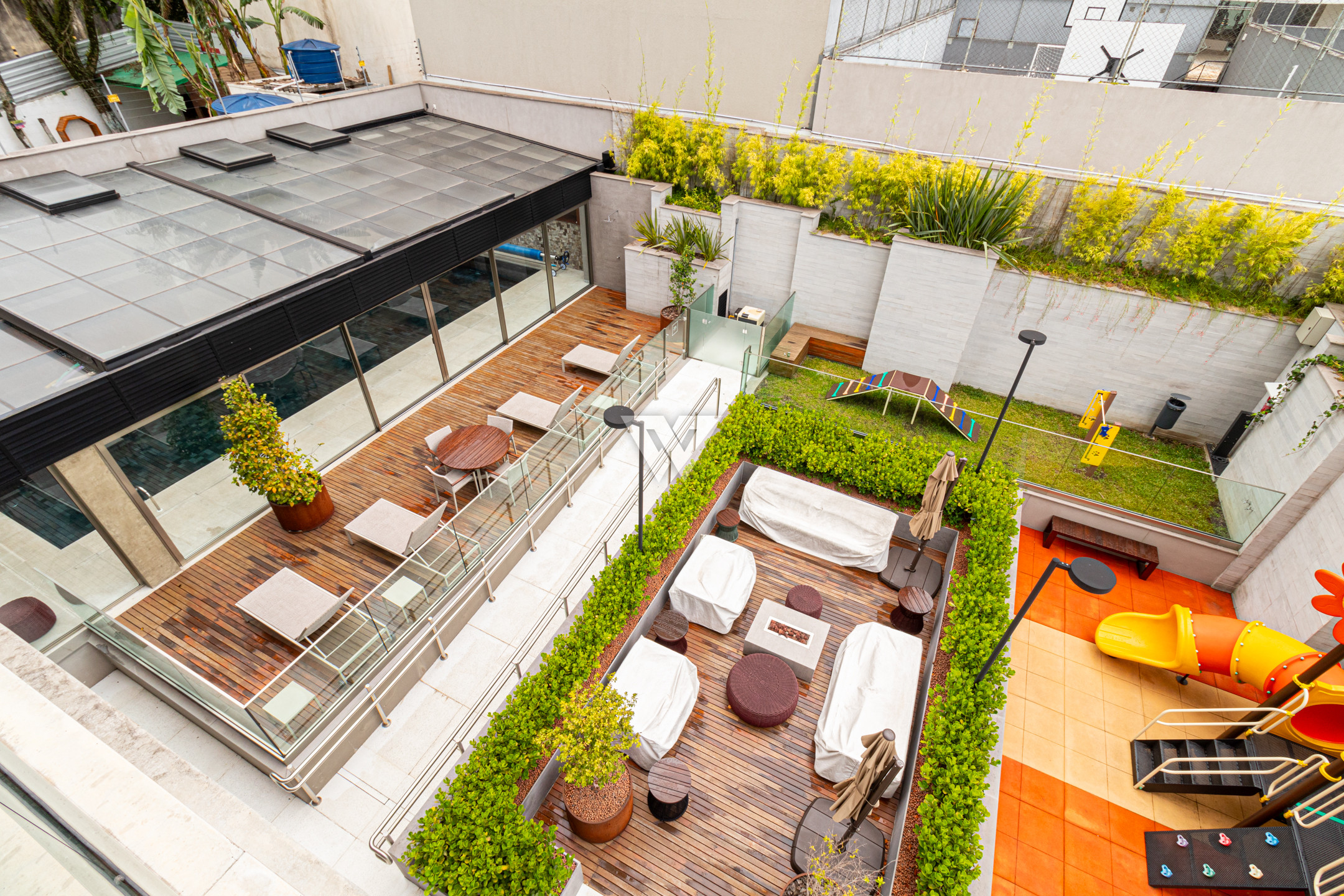 Nas áreas comuns do condomínio, você e sua família terão à disposição, salão de festas com espaço gourmet, lounge externo, brinquedoteca, academia, piscina aquecida com cobertura retrátil, deck da piscina, fireplace, playground, espaço pet, sala para motoristas, portaria com guarita blindada e porte-cochere