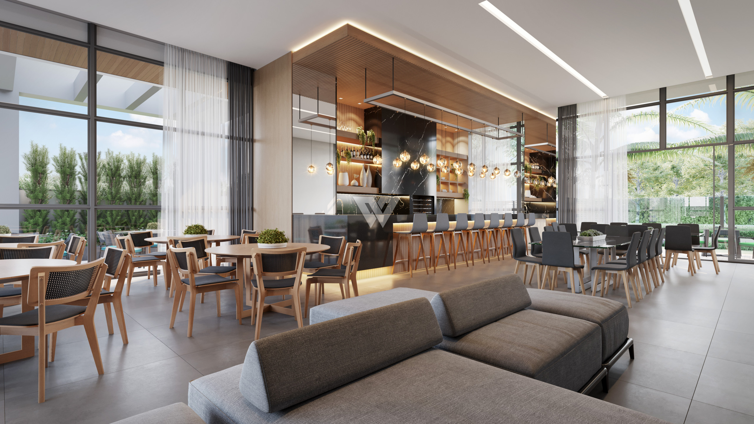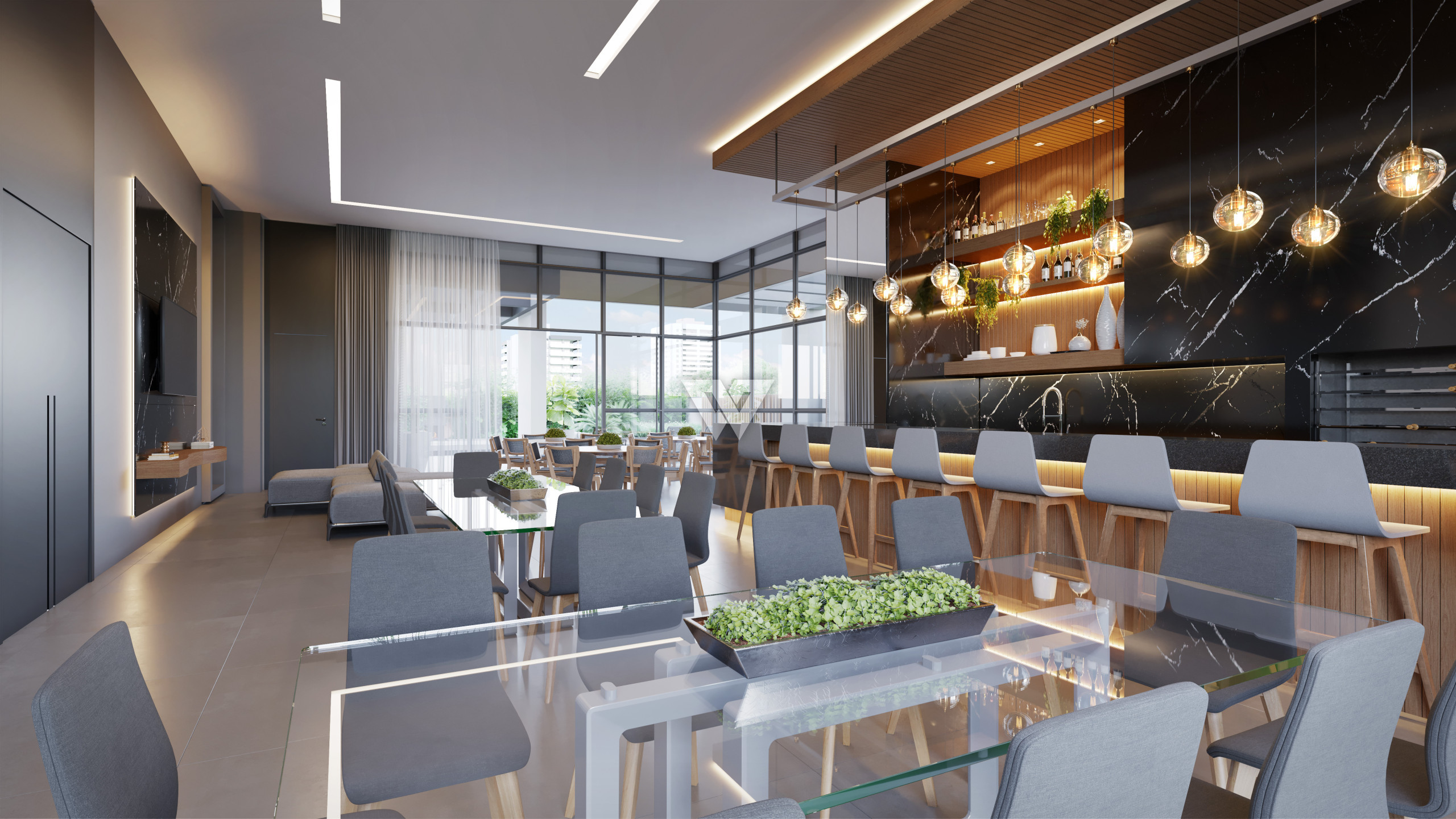 As áreas comuns do prédio contemplam brinquedoteca, playground externo, academia, bicicletário, lareira externa e salão de festas com churrasqueira (equipado e decorado com acesso ao lounge externo). São espaços perfeitos que acolhem um estilo de vida moderno e versátil.