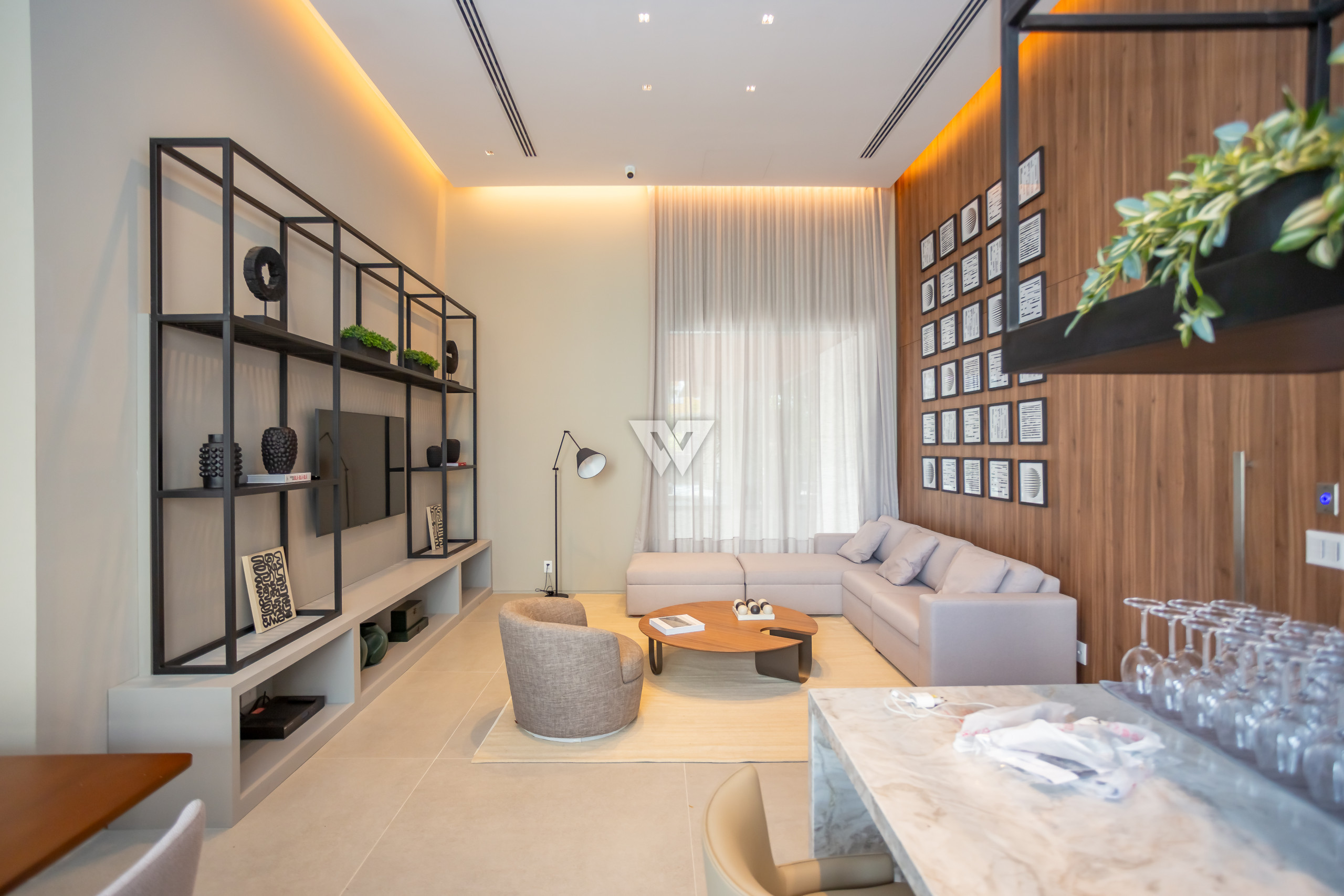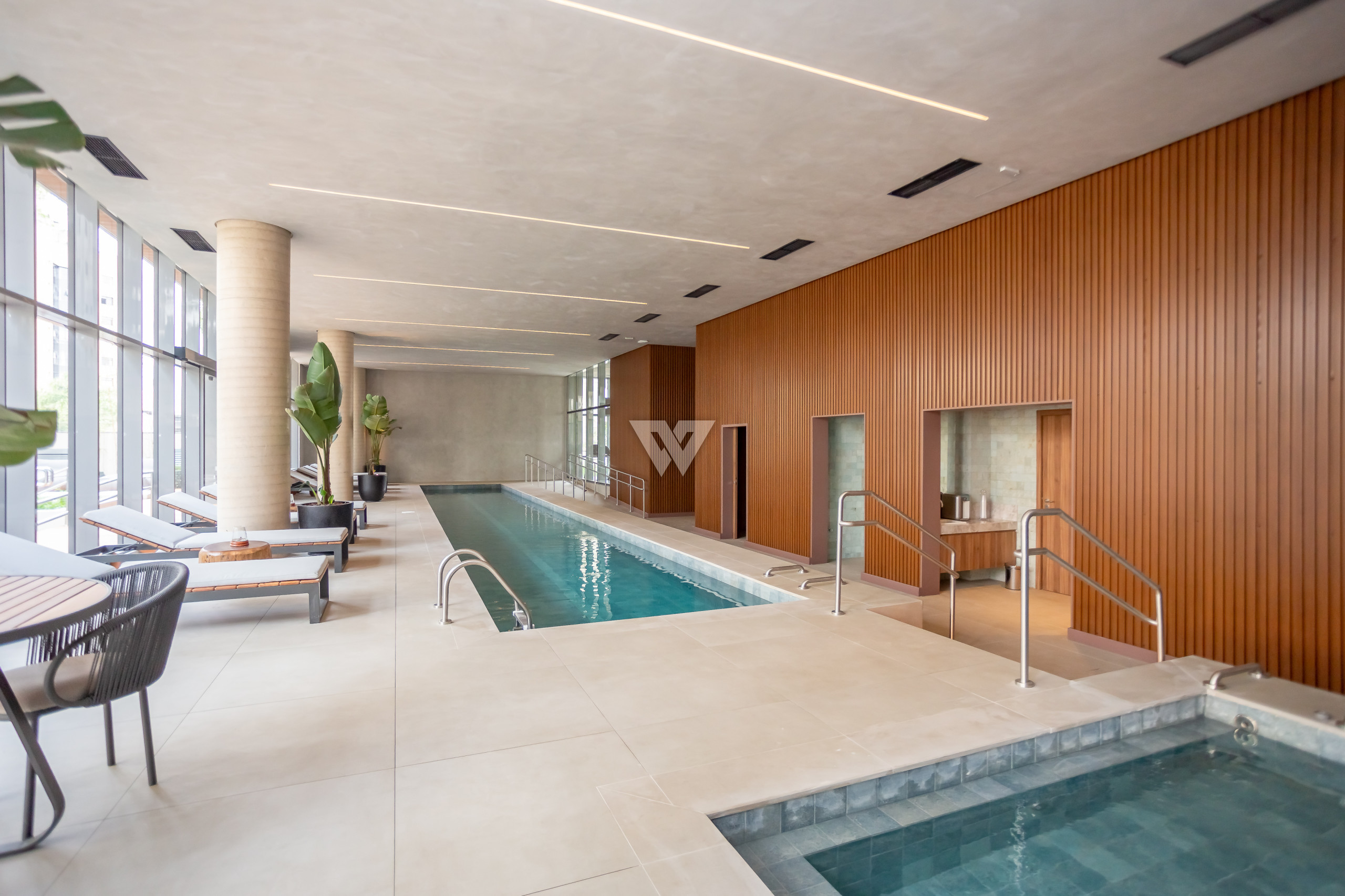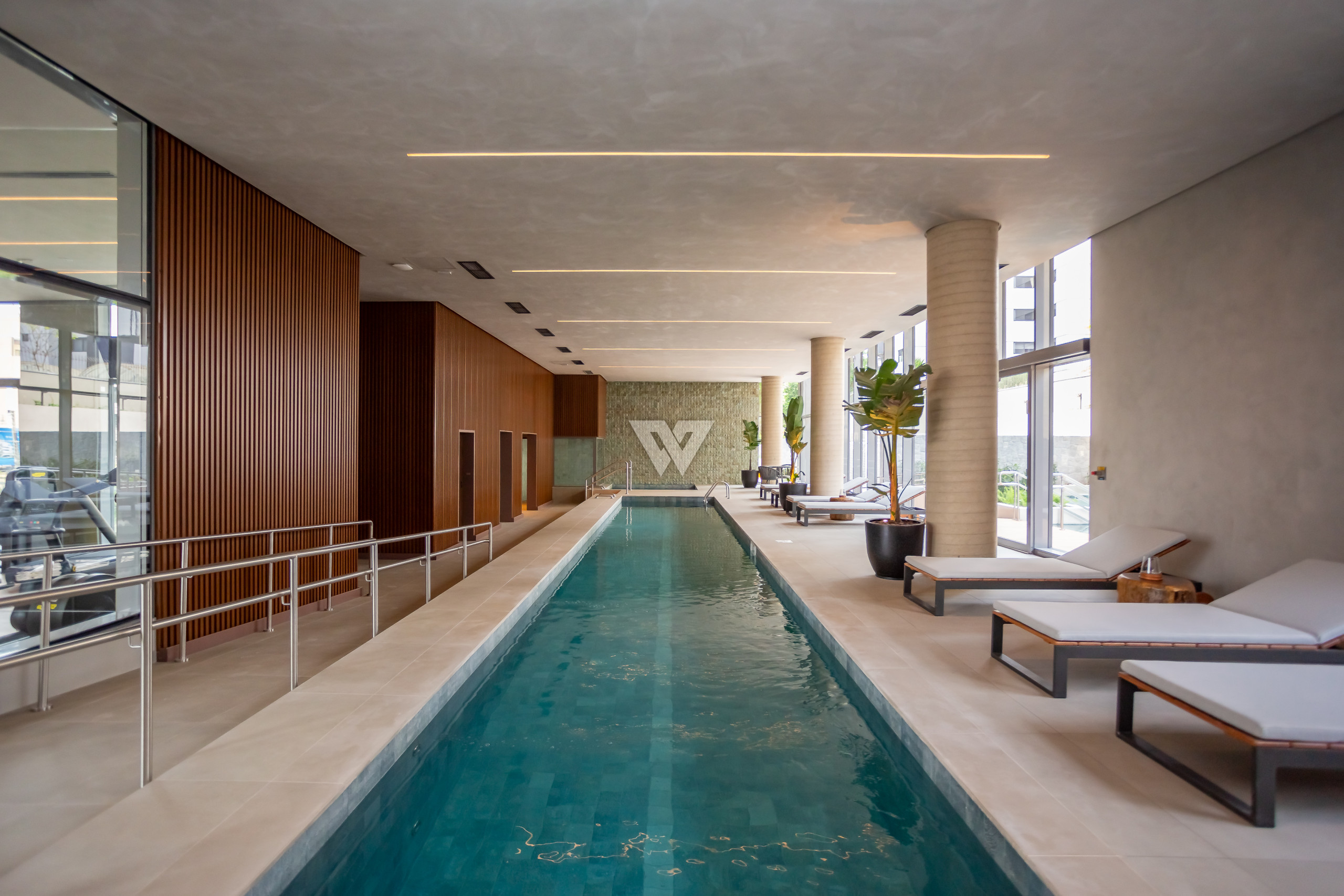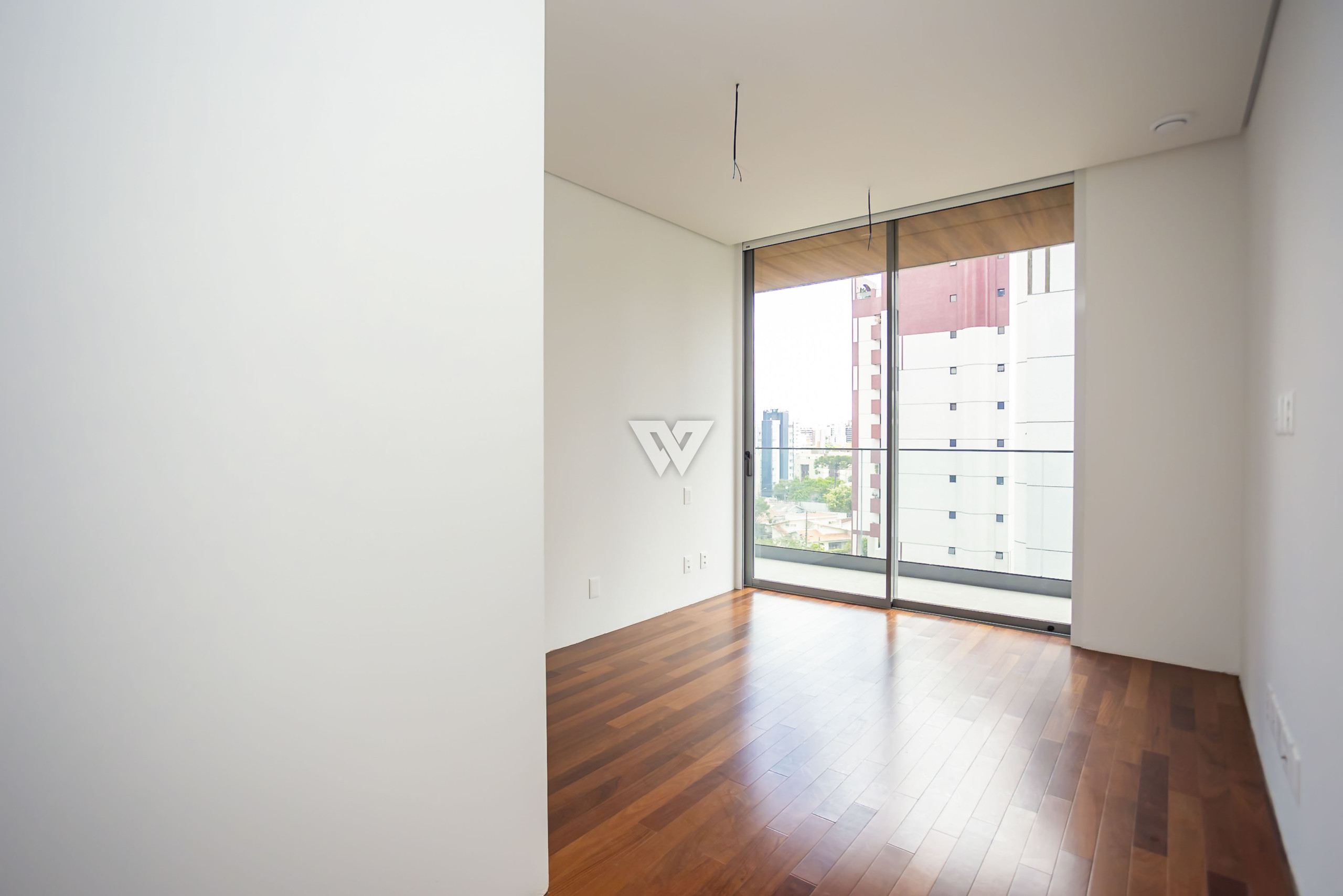 Esquadrias piso-teto de alto desempenho termoacústico e pé-direito elevado.