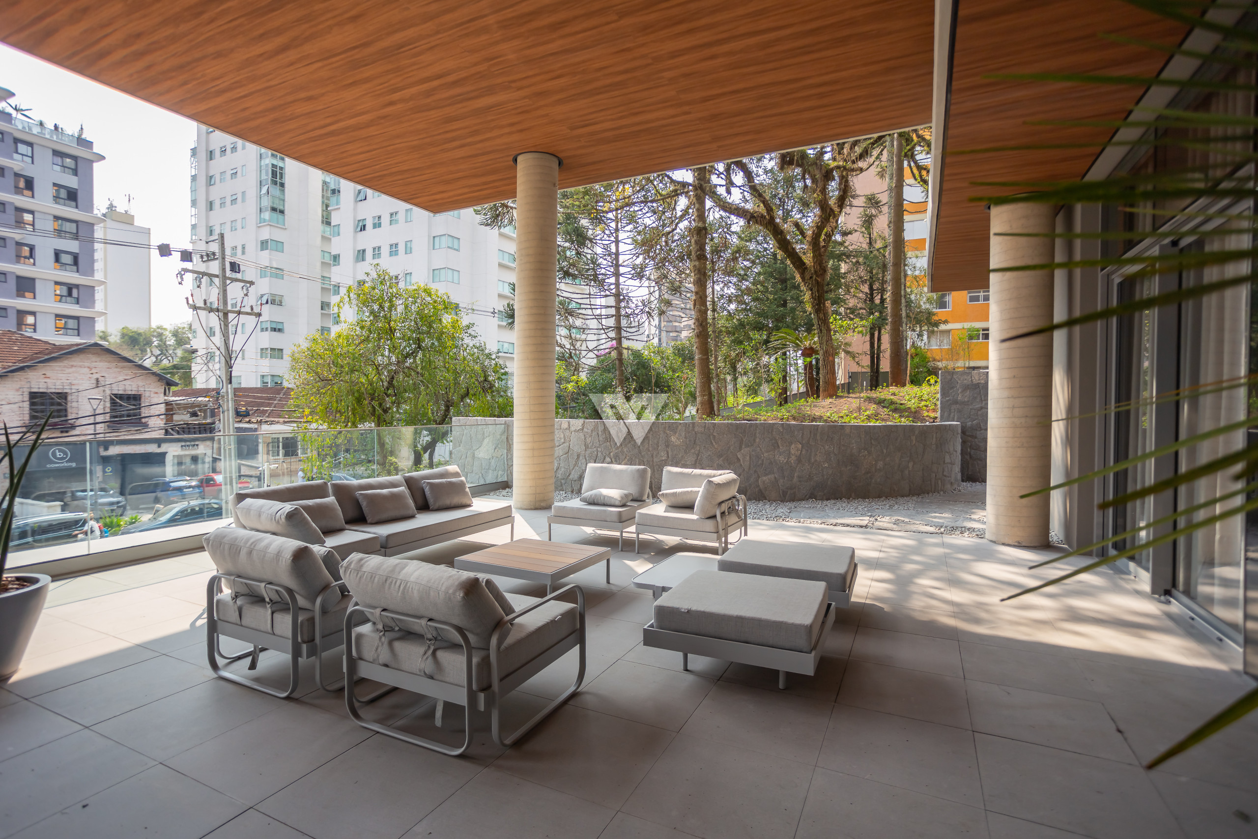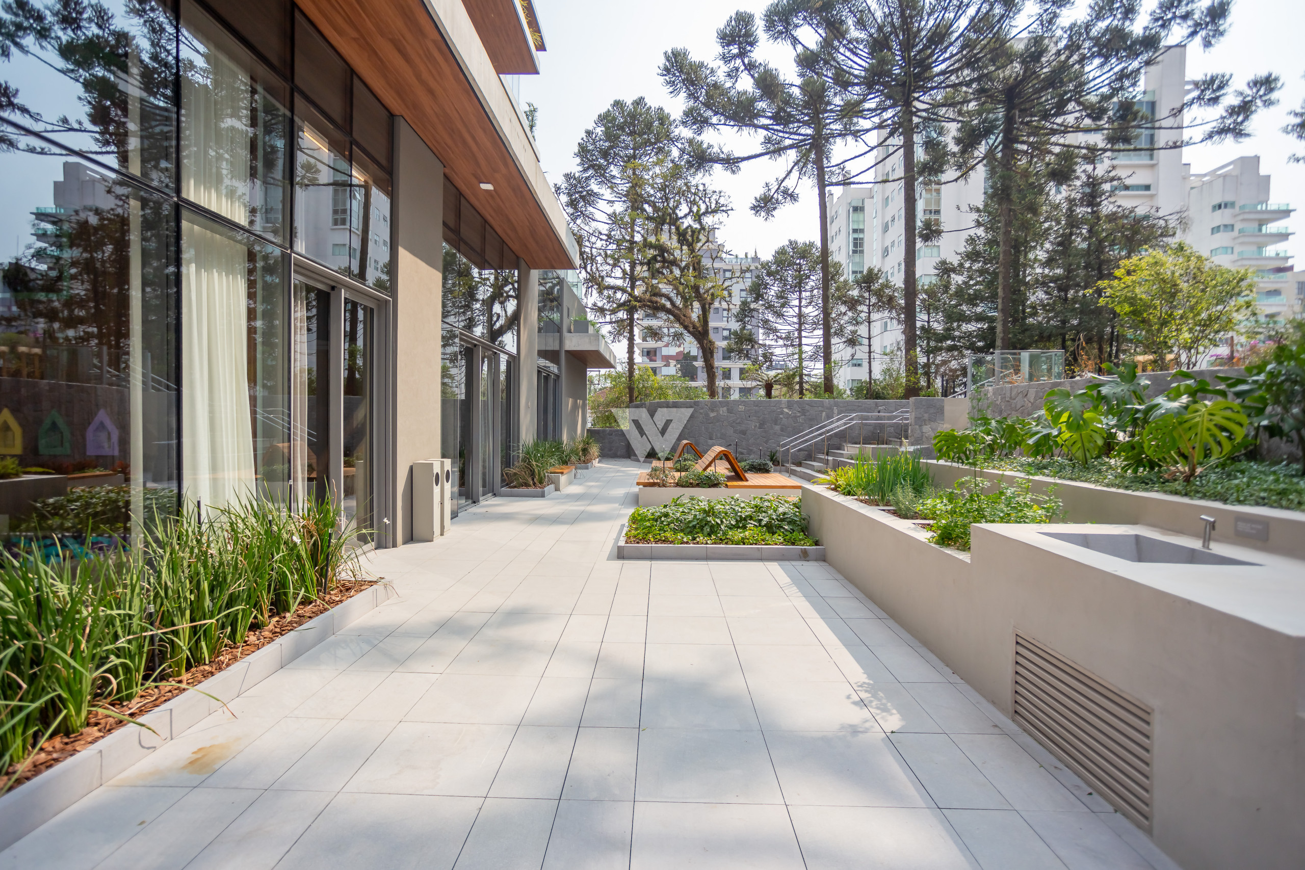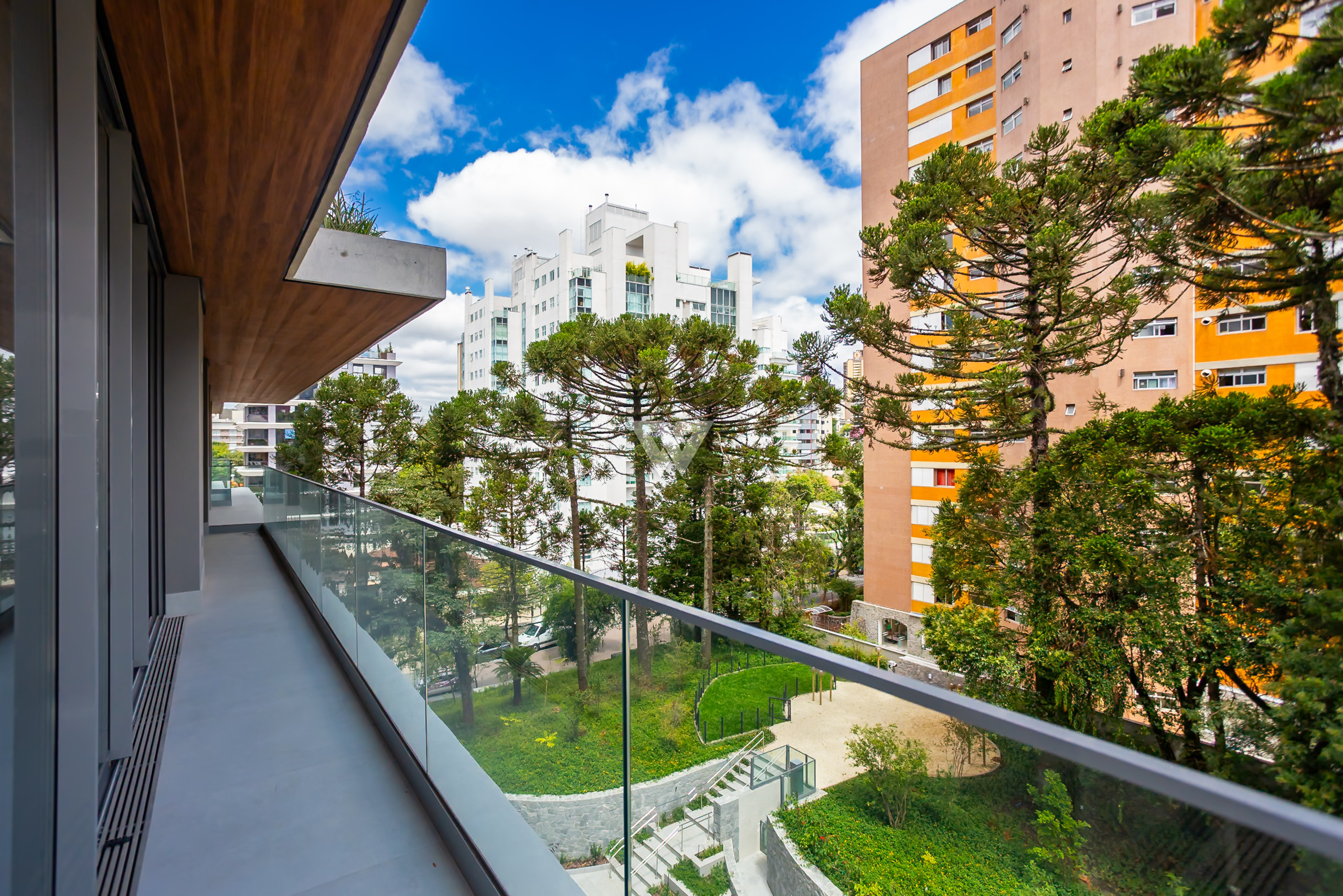 Localizado a uma quadra da Praça da Espanha, no Batel, uma das regiões mais nobres de Curitiba, o imóvel está cercado de conveniências como escolas, faculdades, shoppings, restaurantes. A face norte-leste proporciona sol da manhã nas suítes e na sala, com vista exclusiva para o bosque do terreno, que abriga 13 araucárias nativas.