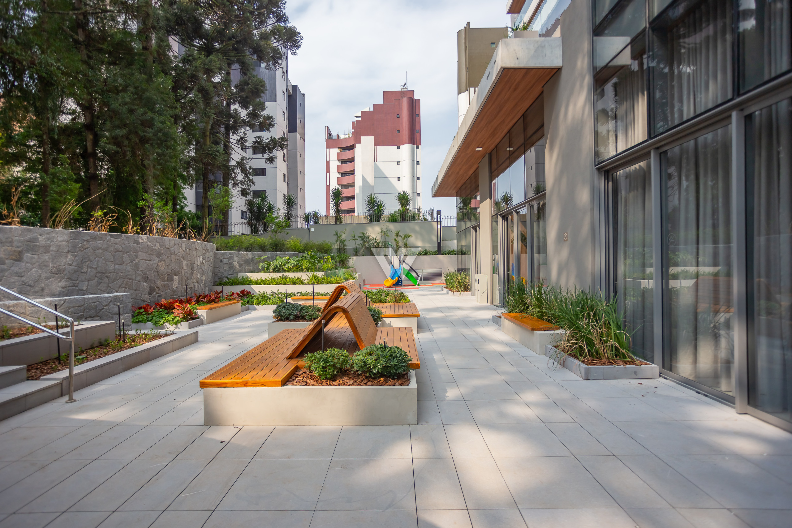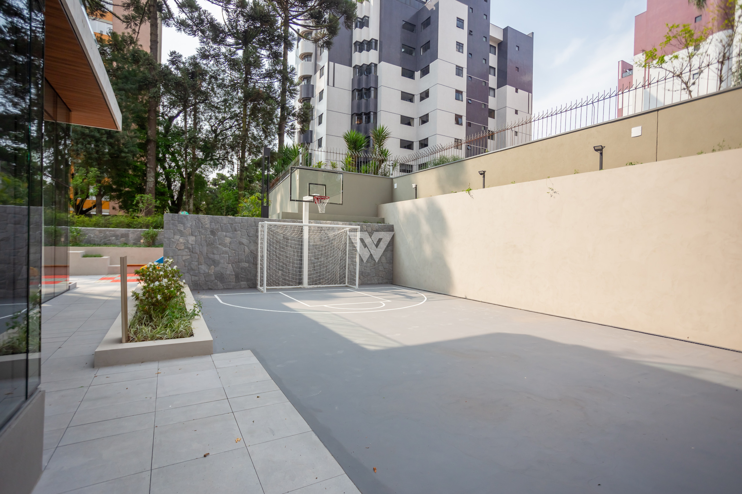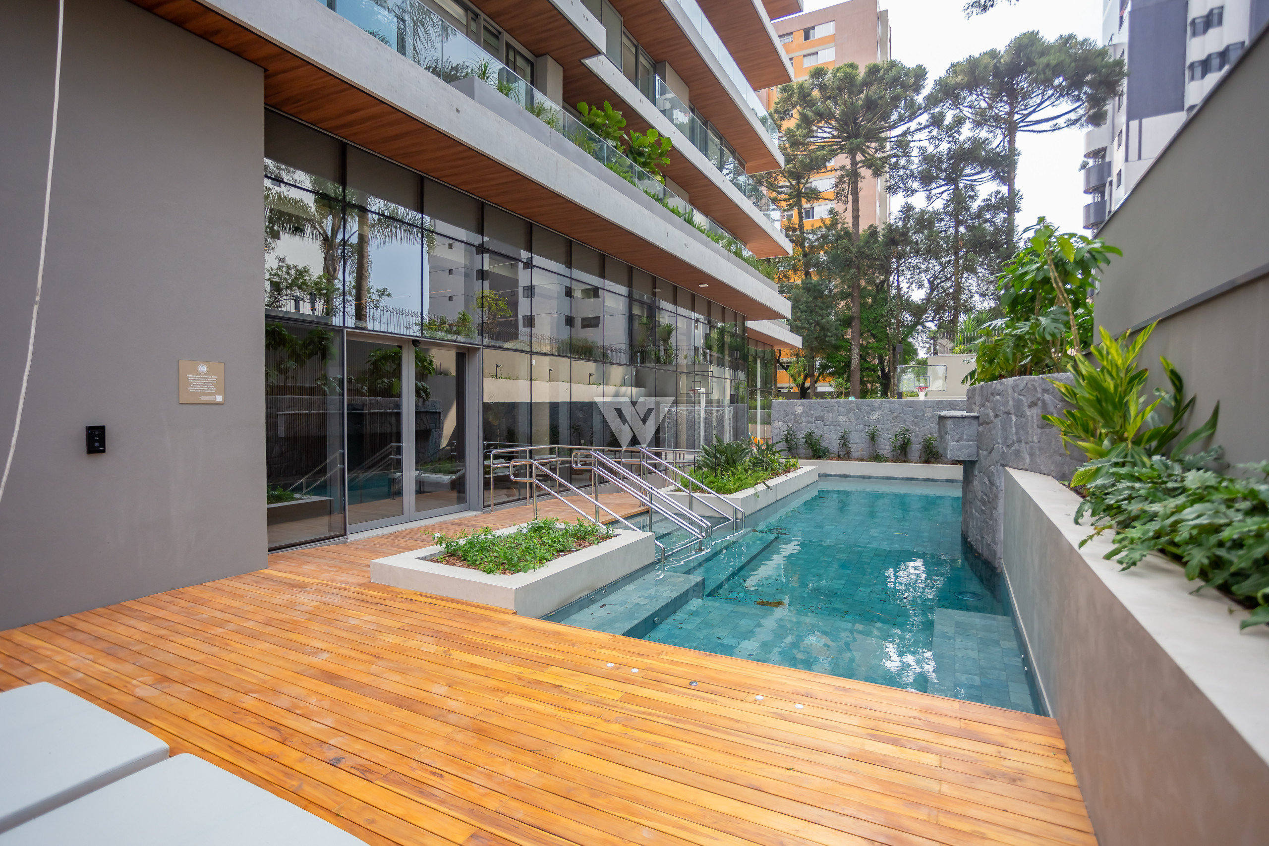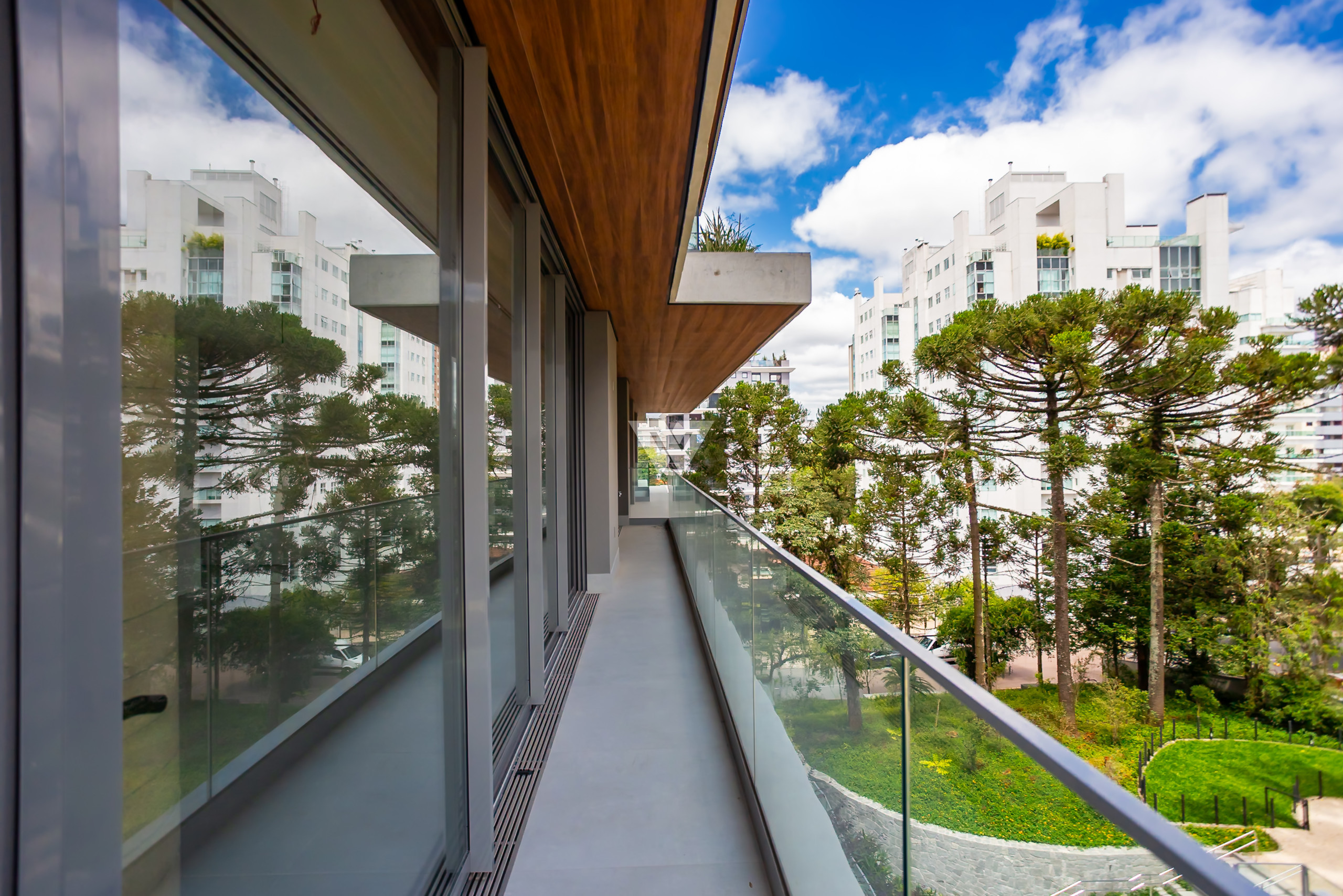 Localizado a uma quadra da Praça da Espanha, no Batel, uma das regiões mais nobres de Curitiba, o imóvel está cercado de conveniências como escolas, faculdades, shoppings, restaurantes. A face norte-leste proporciona sol da manhã nas suítes e na sala, com vista exclusiva para o bosque do terreno, que abriga 13 araucárias nativas.
