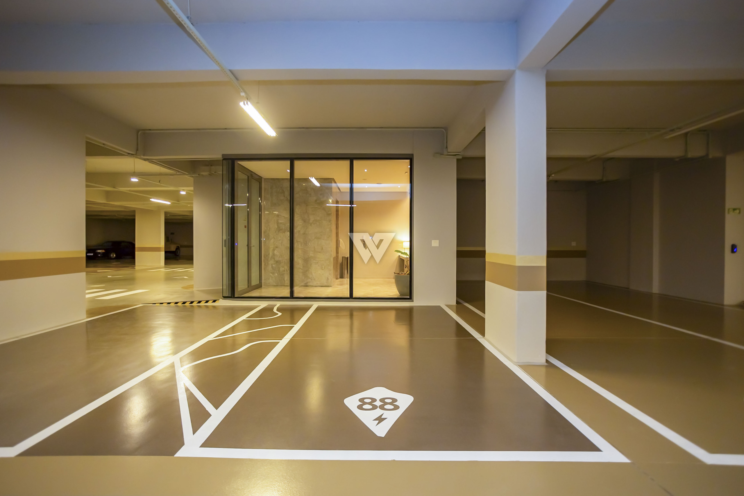 Vaga conforto com espera para tomada de carregamento elétrico.