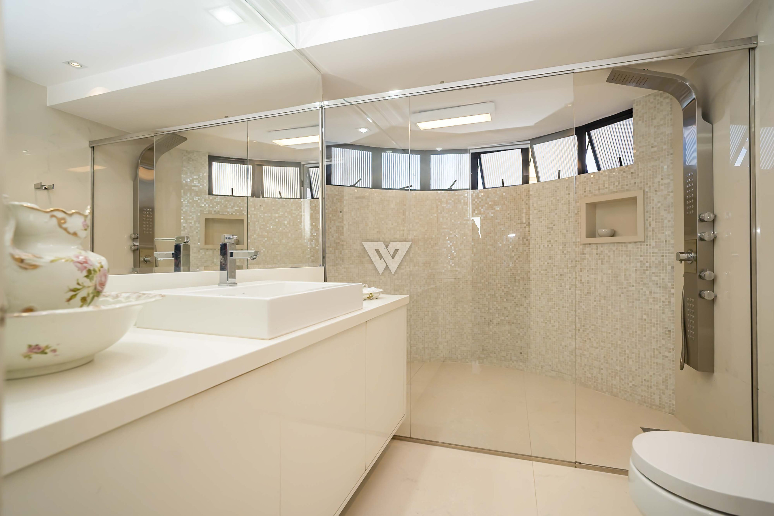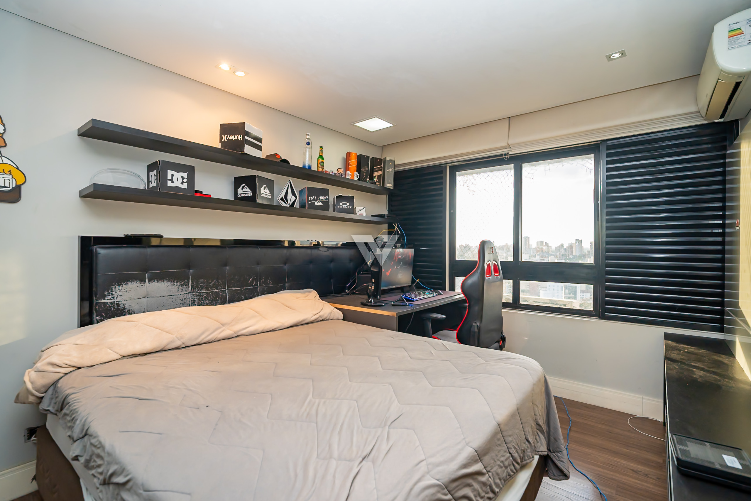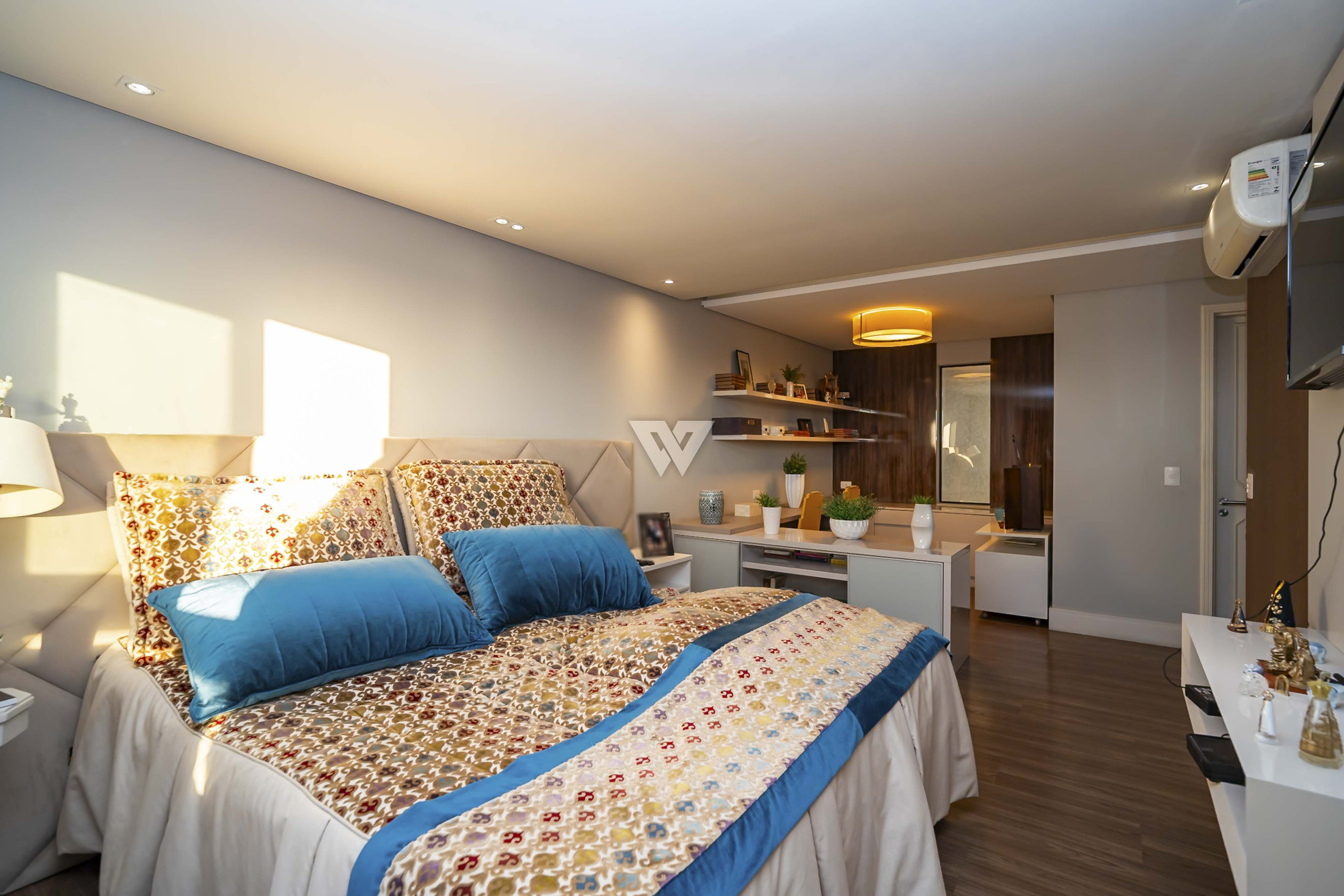Com 260m² privativos, o imóvel conta com face norte, garantindo luminosidade natural durante todo o dia. São quatro dormitórios, sendo duas suítes, a master com closet e banheira.