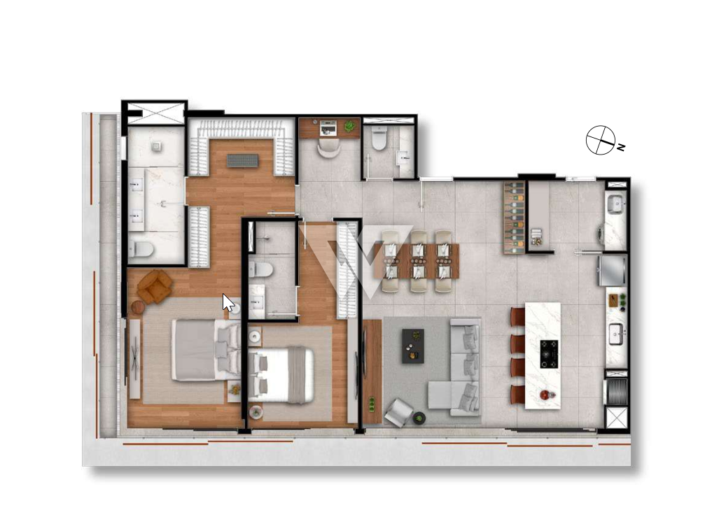 Esta unidade de 130m² privativos possui: - 2 suítes - 2 vagas de garagem - Esquadrias do piso ao teto com ampla abertura - Porcelanato 90x90 na cozinha, sala e área de serviço. - Piso de madeira na área íntima. - Piso aquecido nas suítes e banheiros das suítes. - Ralo linear oculto nos banheiros. - Mármore na bancada e nichos dos banheiros. - Piso em mármore no banheiro da suíte master. - Aspiração central. - Elevador com biometria e senha. - Entrada de serviço com biometria e senha. - Infra para automação e ar condicionado.