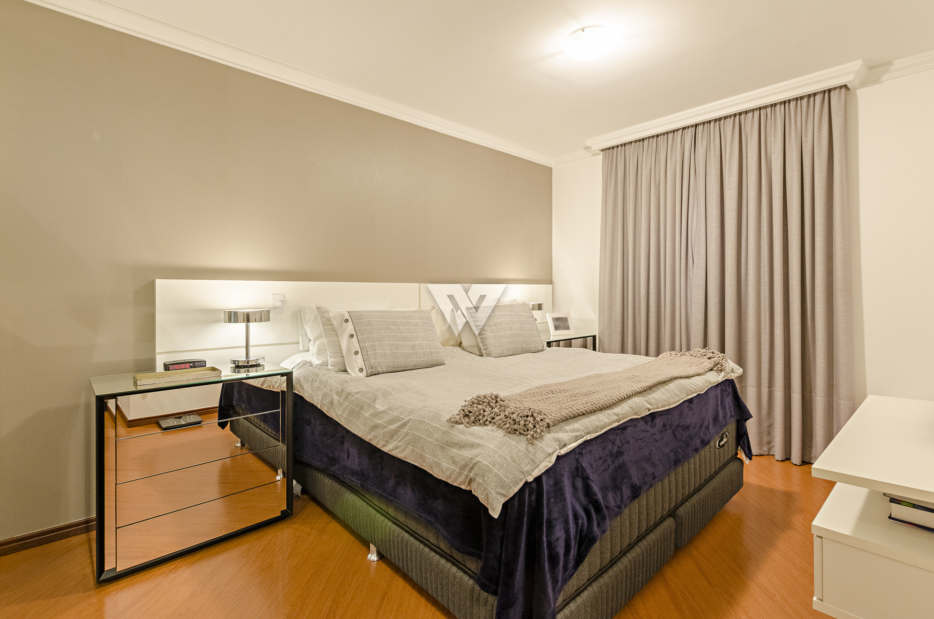 3º QUARTO SUÍTE: Piso em laminado de madeira, armário próximo da porta de entrada para o quarto com 2 portas correr armarios.