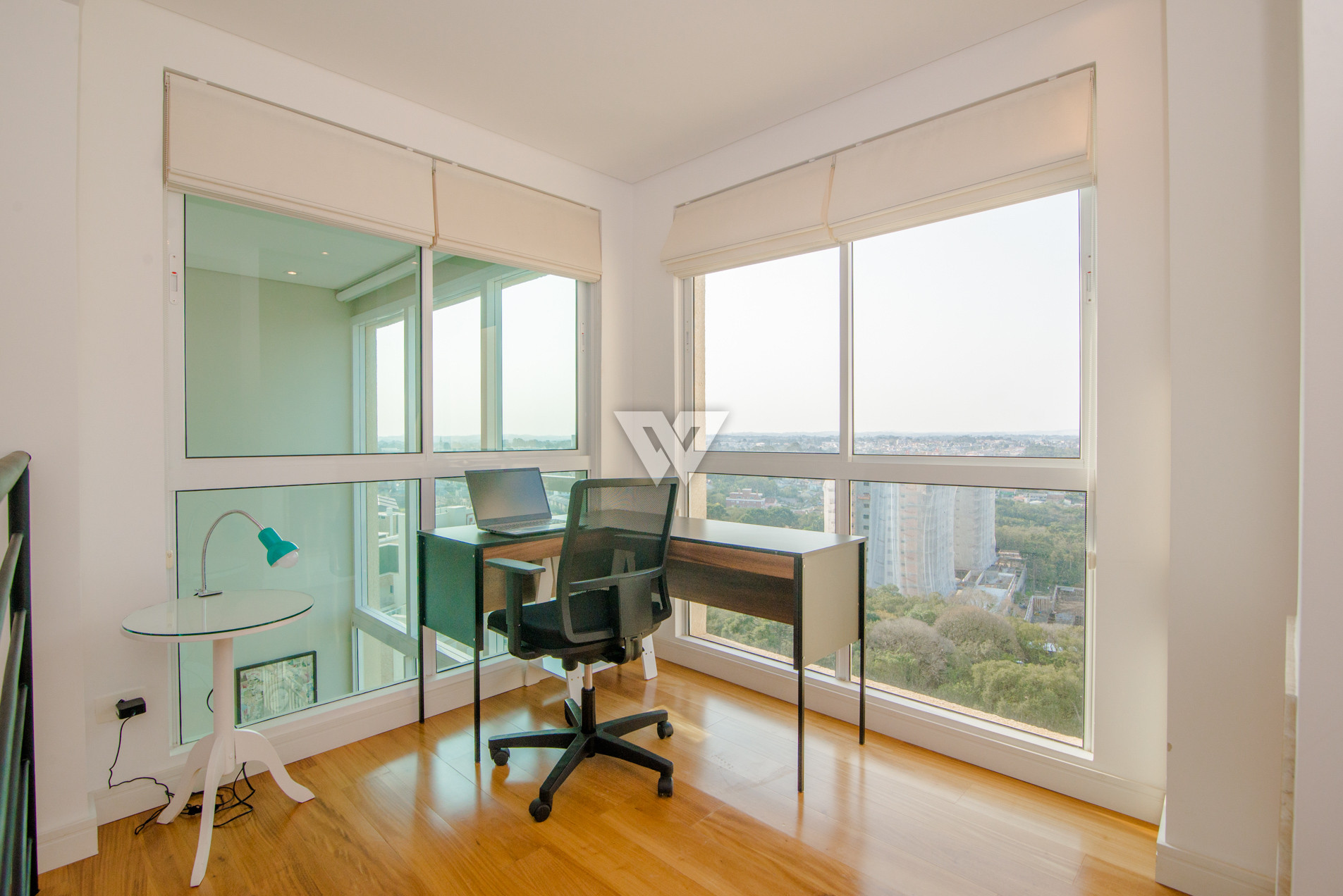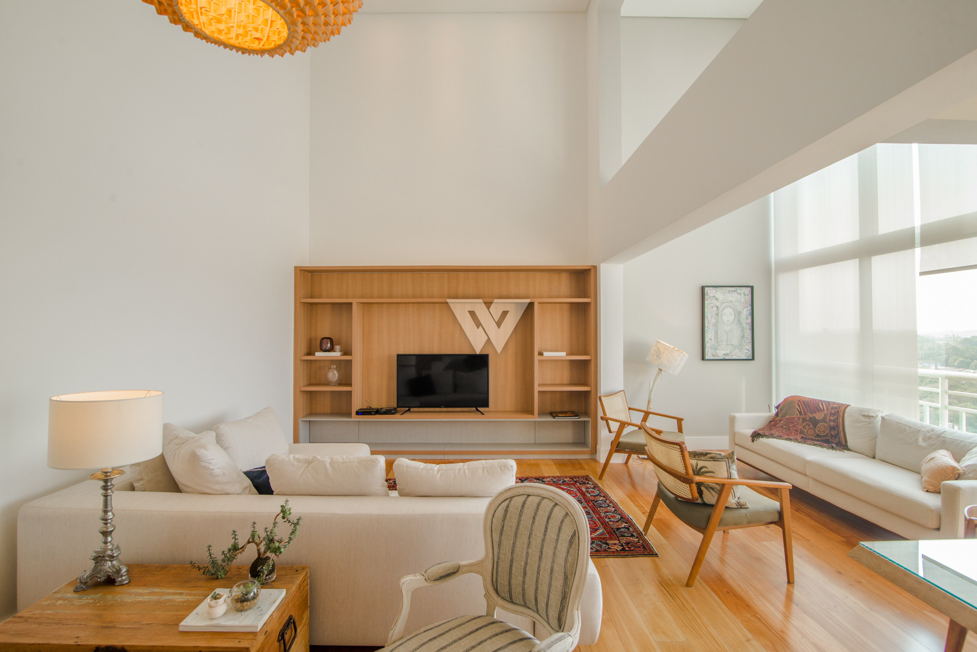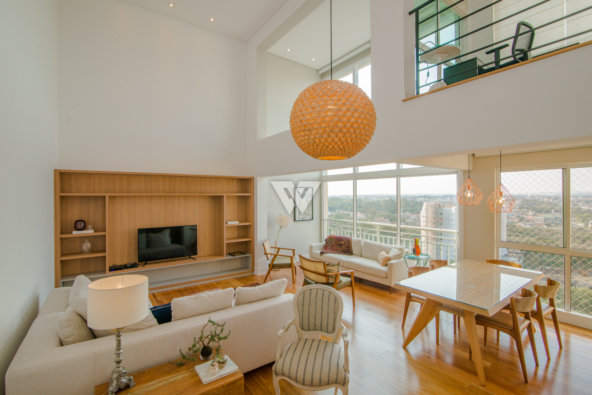 Pé direito duplo encantador: Proporciona um ambiente arejado, com muita luz natural e uma vista panorâmica deslumbrante da cidade.