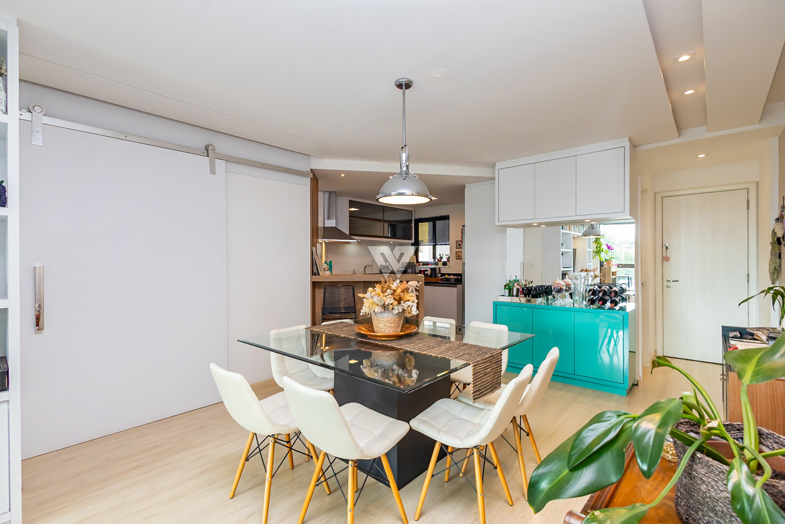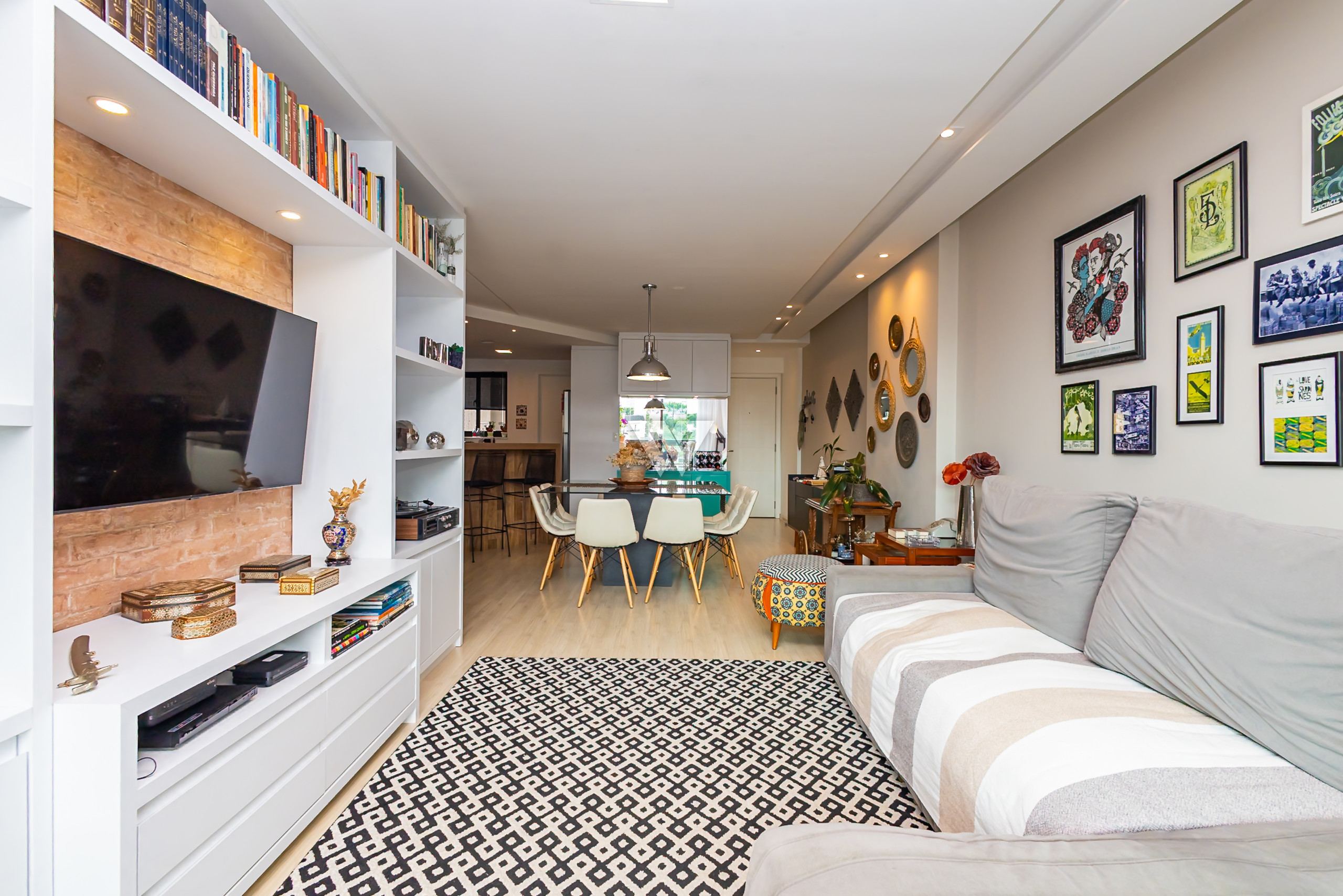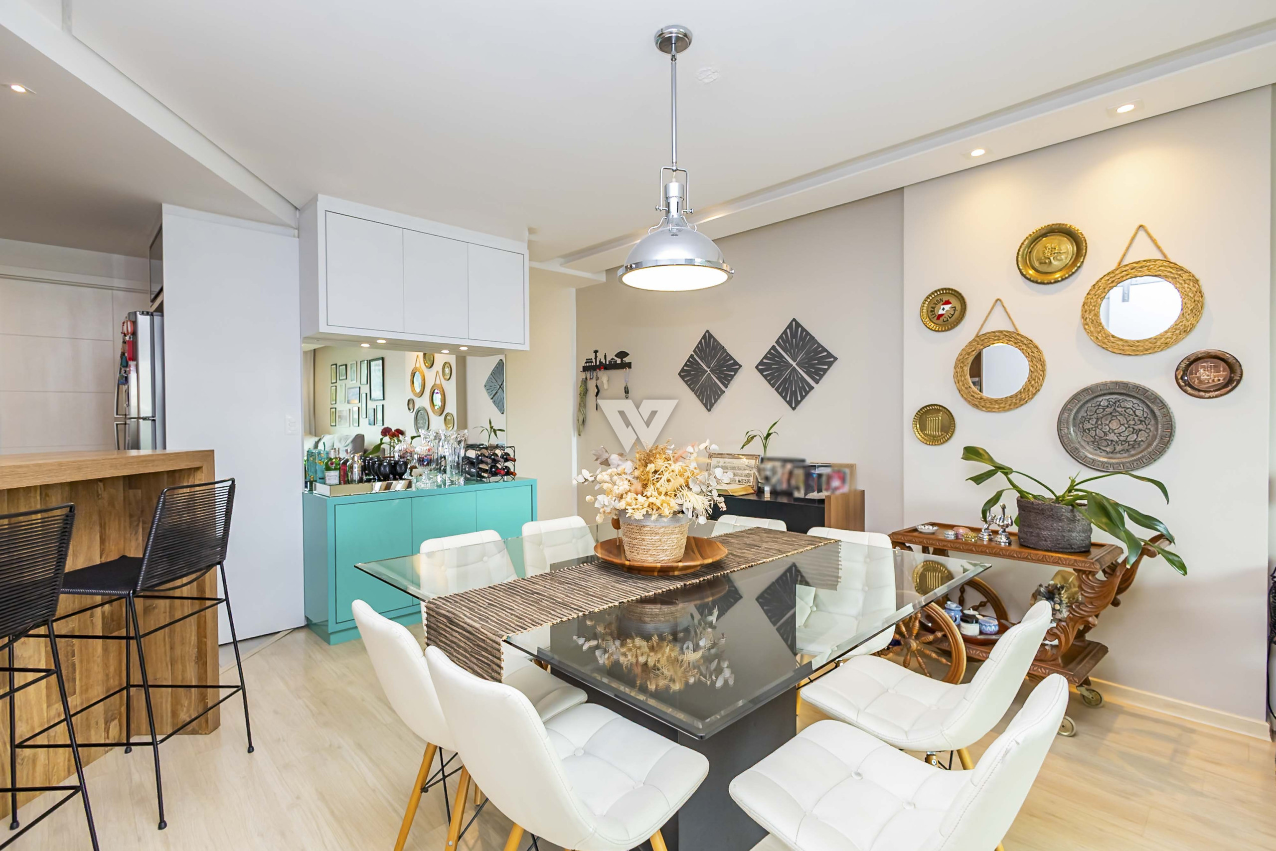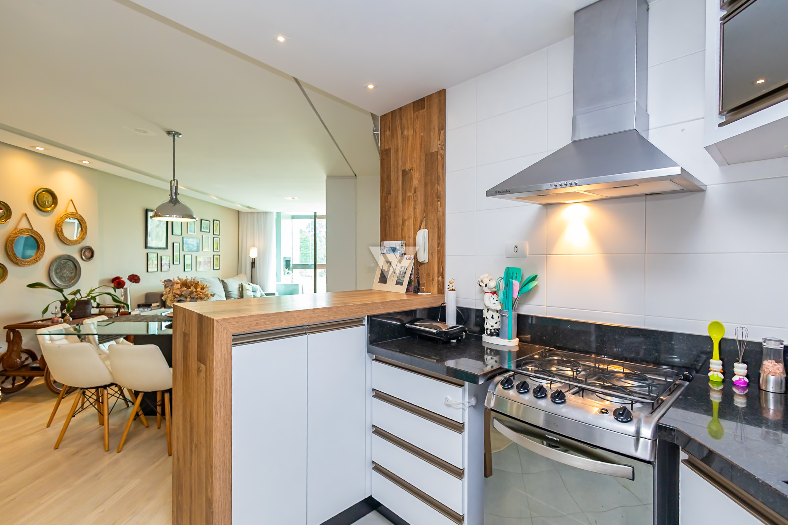 São 3 quartos, sendo uma suíte, lavabo, cozinha integrada com a sala de estar e jantar e ampla varanda com churrasqueira à carvão.