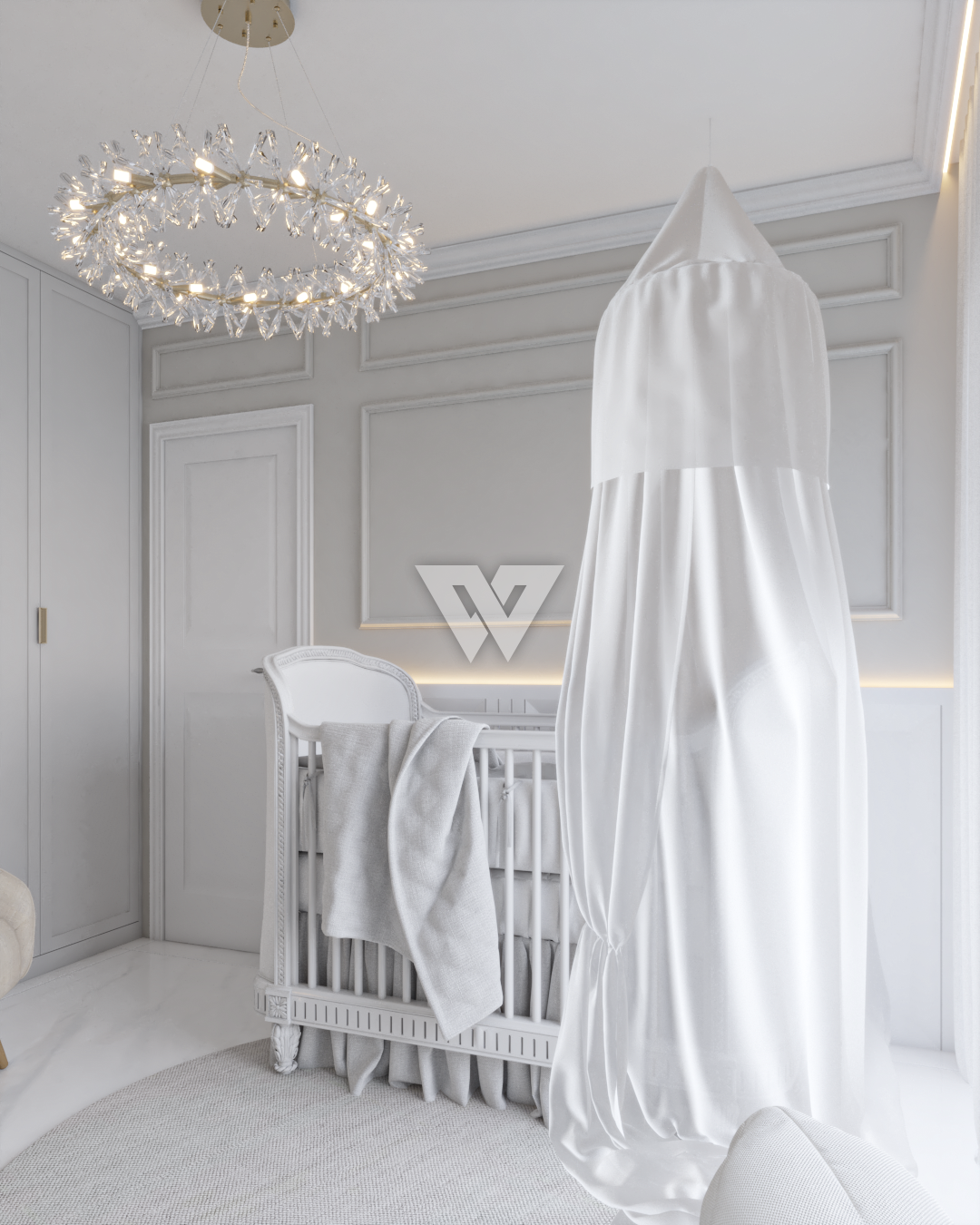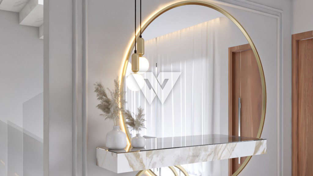 Moldura bisote estilo retrô e corrimão conforme imagem. Luminárias serão entregues conforme estilo da ilustração. LEDs no gesso inclusas