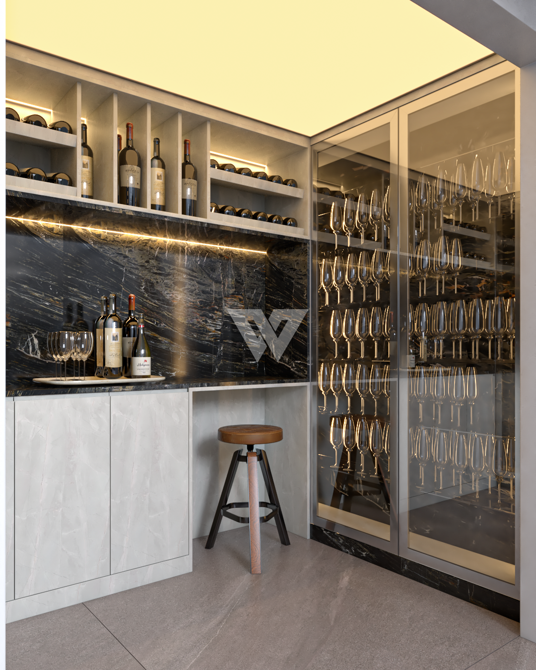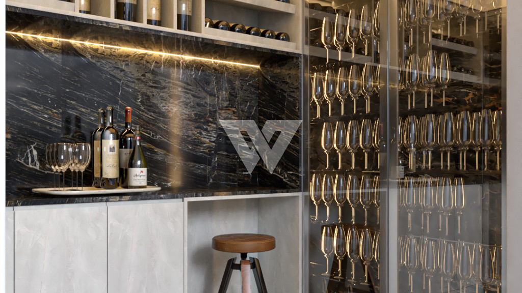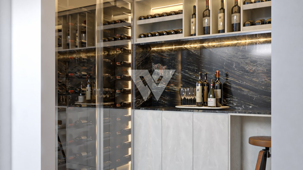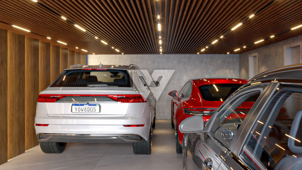 Garagem subterrânea para até quatro carros. adega e lavanderia