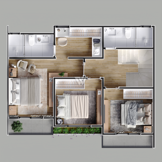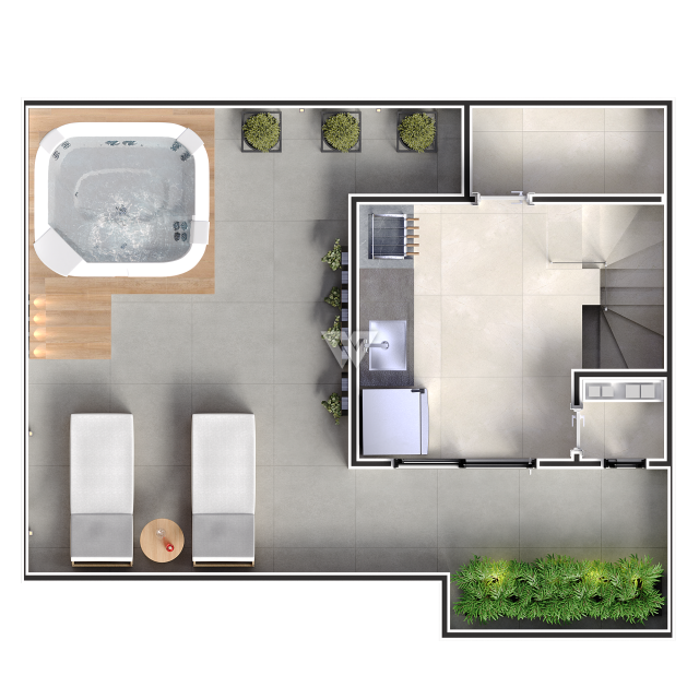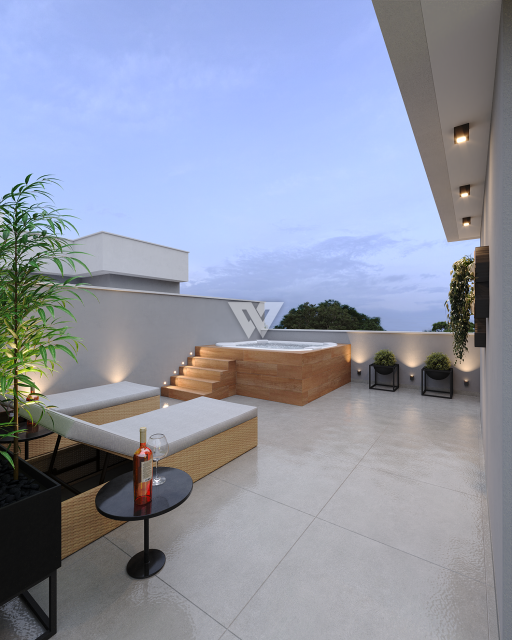 jardim individual; no segundo ambiente, 3 suítes sendo a master com closet e sacada; no ático, espaço multiuso