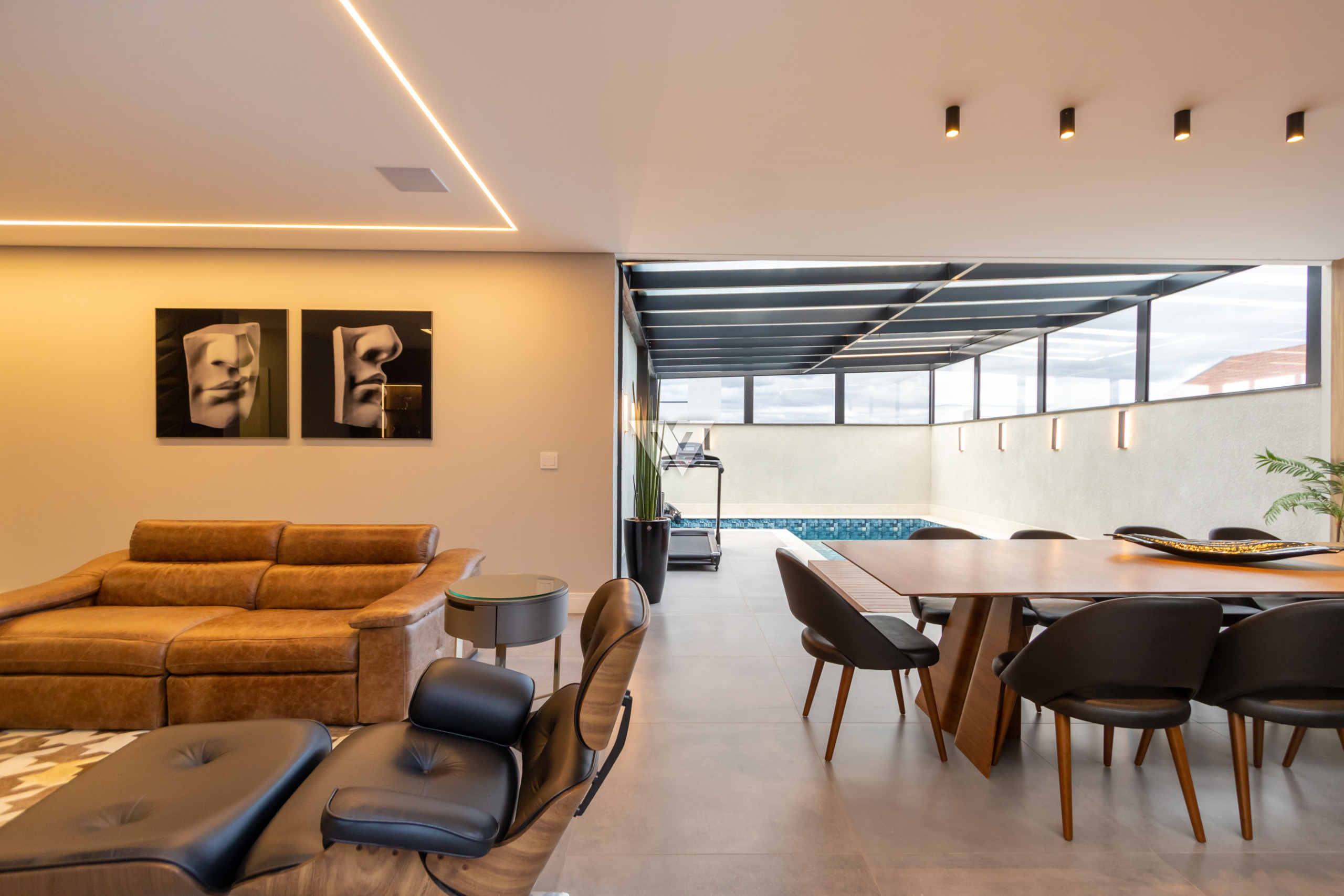 Projeto pensado e desenvolvido em estilo contemporâneo e com alto padrão de acabamentos onde, os ambientes de convívio estão totalmente integrados, em harmonia, favorecendo o bem-estar, conforto e funcionalidade.