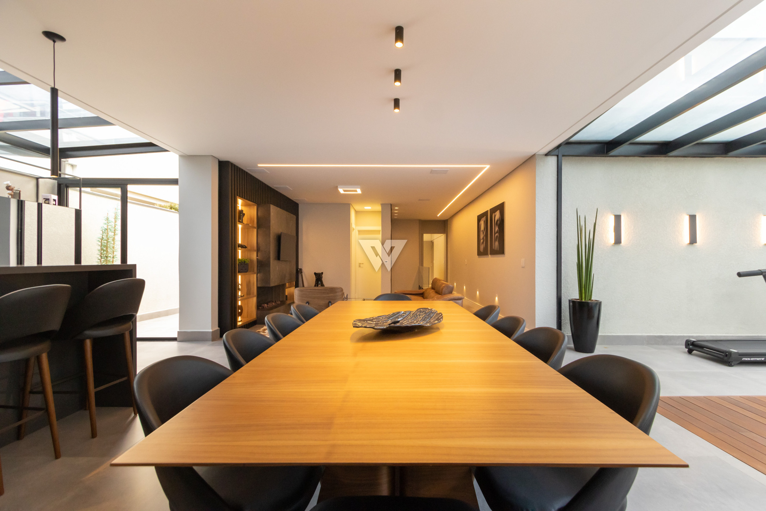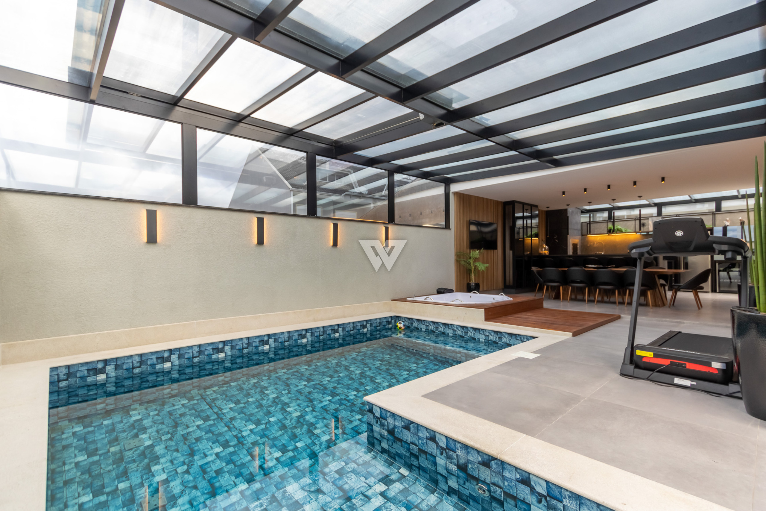 São 380m² de área construída privativa com seus cômodos distribuídos em: fantástico espaço gourmet com piscina aquecida e coberta, com cobertura retrátil e mais SPA, sala de estar e jantar, cozinha, lavabo, 3 suítes (1 com closet), escritório, lavabo, área de serviço, 6 vagas de garagem sendo que, no mesmo nível encontra-se, também, academia e depósito.