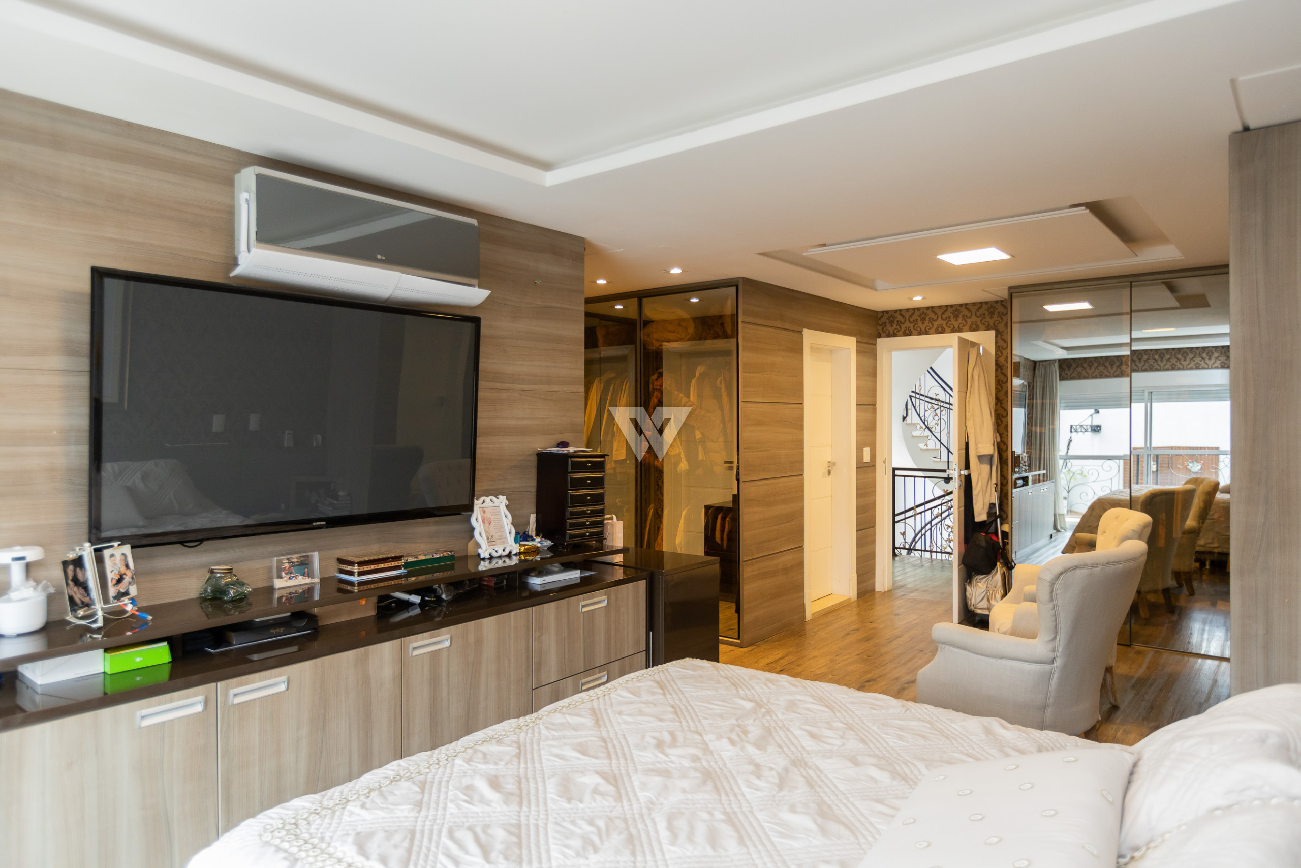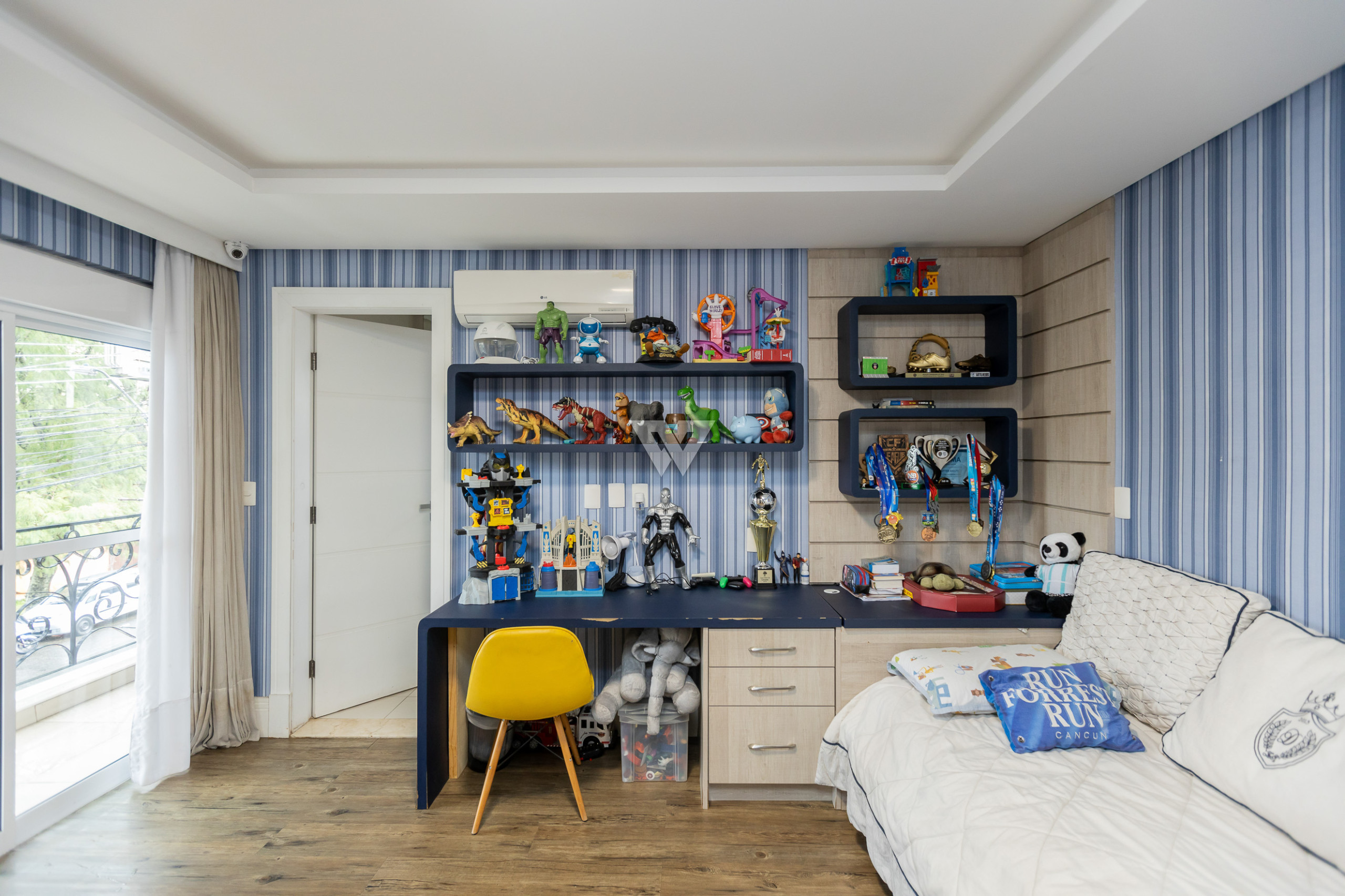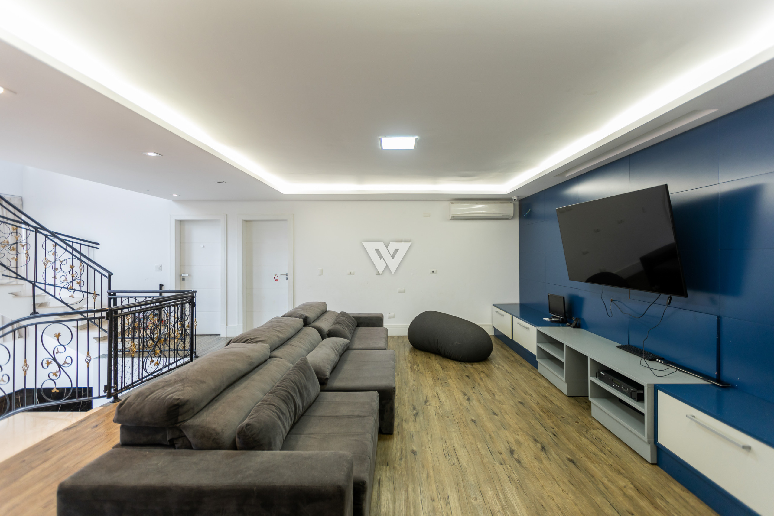 No segundo pavimento o olhar se volta para as 4 suítes amplas, mobiliadas interligadas por uma copa e uma confortável e espacosa sala intima