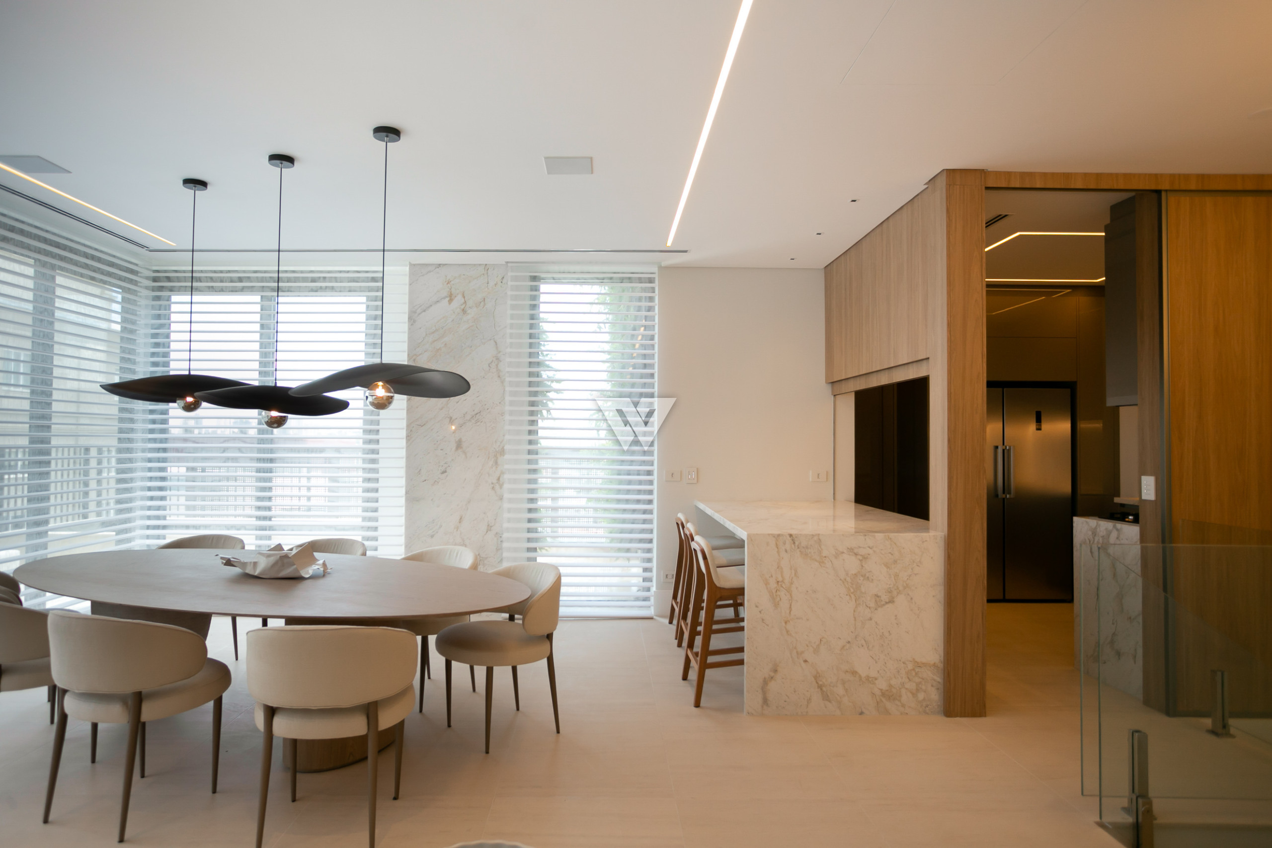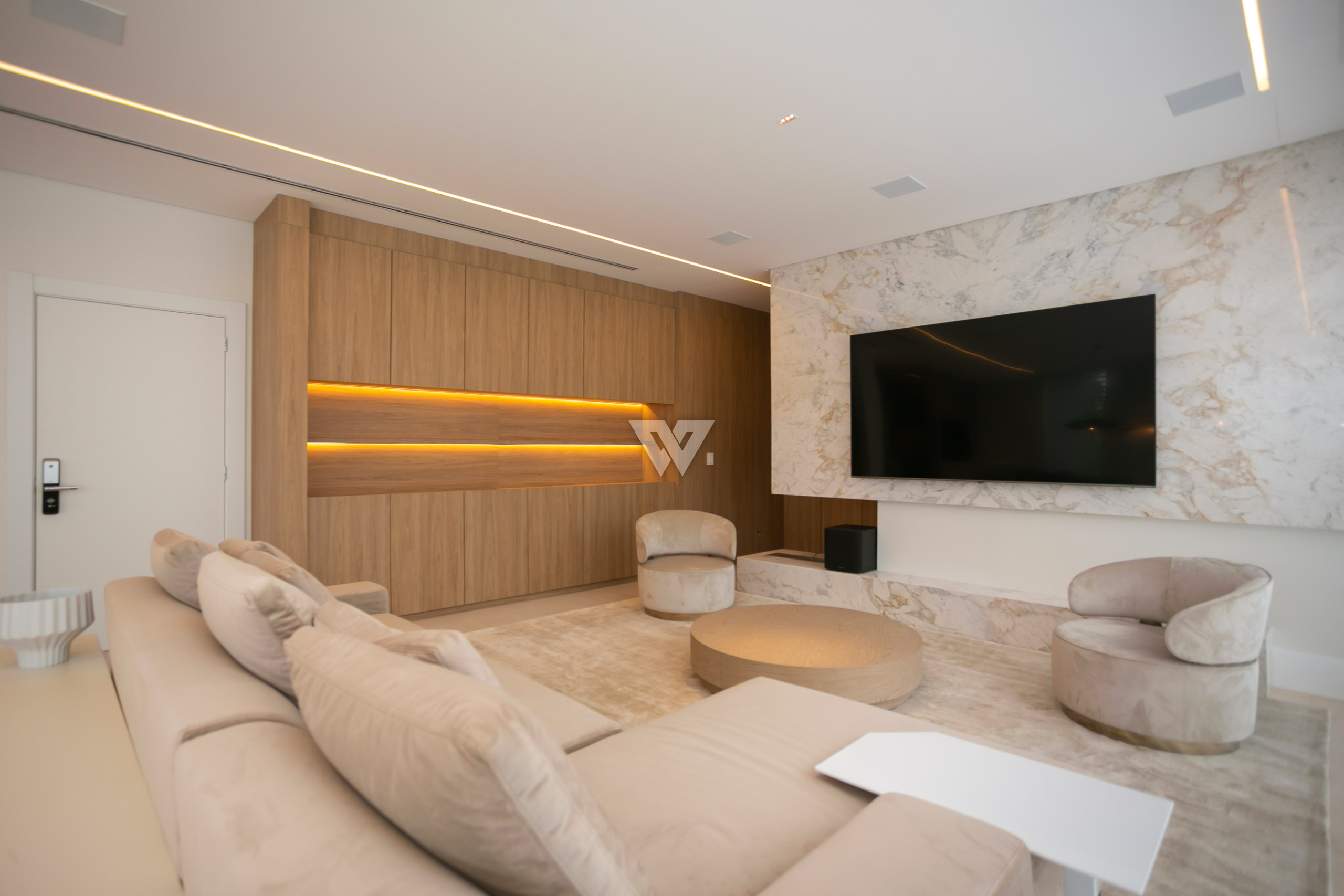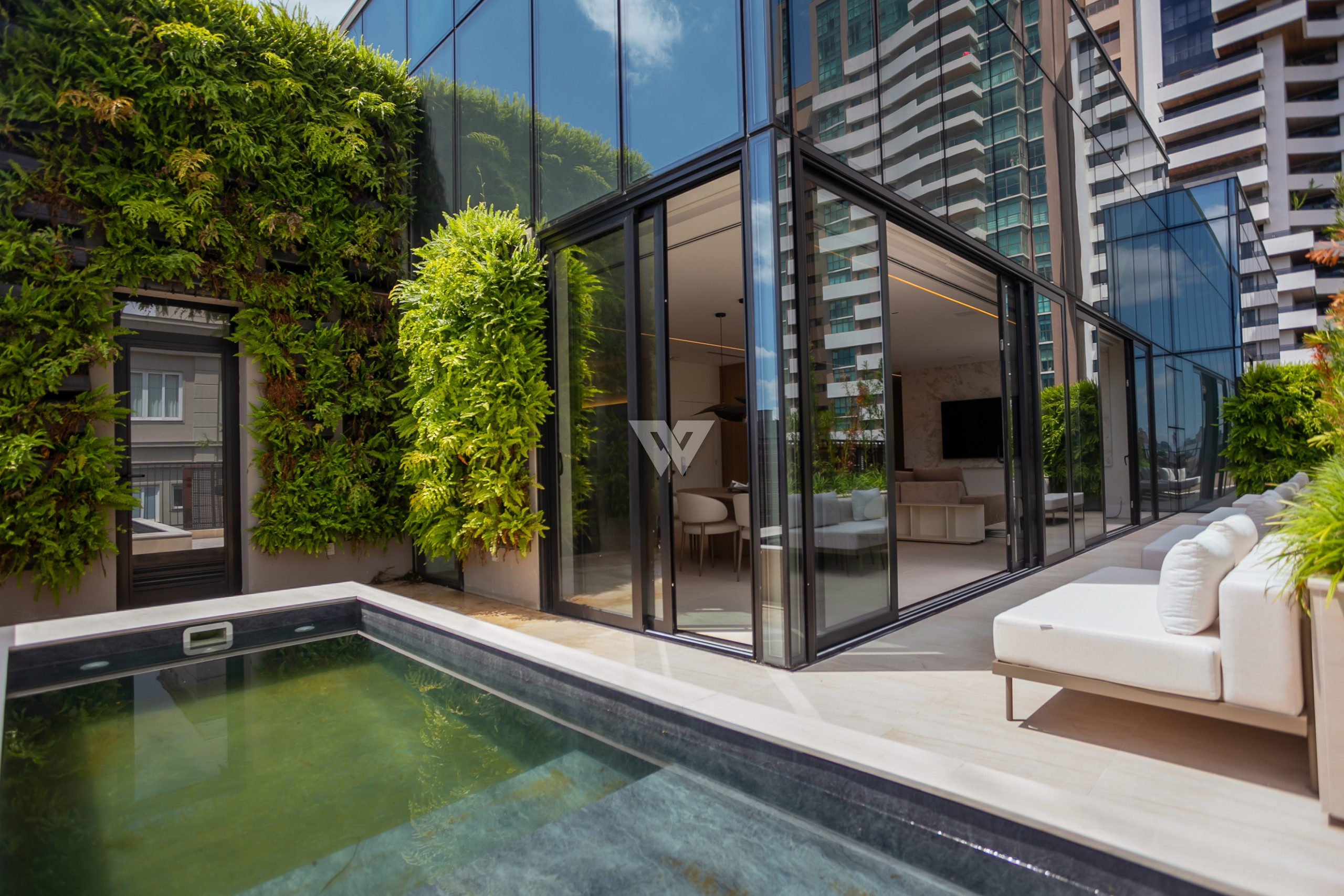 No interior da cobertura, você poderá desfrutar de 308 m² privativos, 3 quartos, 3 suítes), cozinha, despensa, banheiros com armários, automação instalada em cada ambiente e uma piscina espetacular na área externa. Além disso, a suíte master conta com um belo banheiro em mármore.