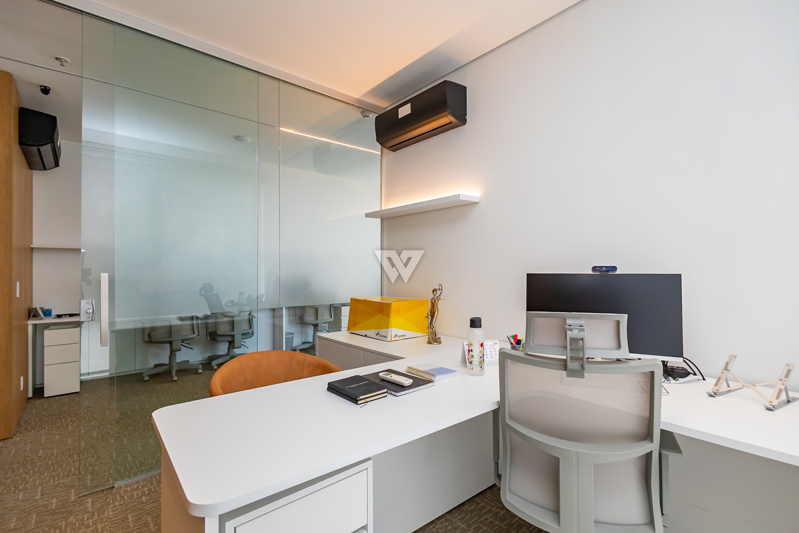 Além de estar finamente decorada, ficam todos os móveis fixos, a sala possui ar condicionado em todos os seus ambientes, o projeto aproveita ao máximo a iluminação natural, e ainda oferece 02 vagas de garagem exclusiva. Fechadura eletrônica com senha na entrada da sala, dispensando o uso de chaves.