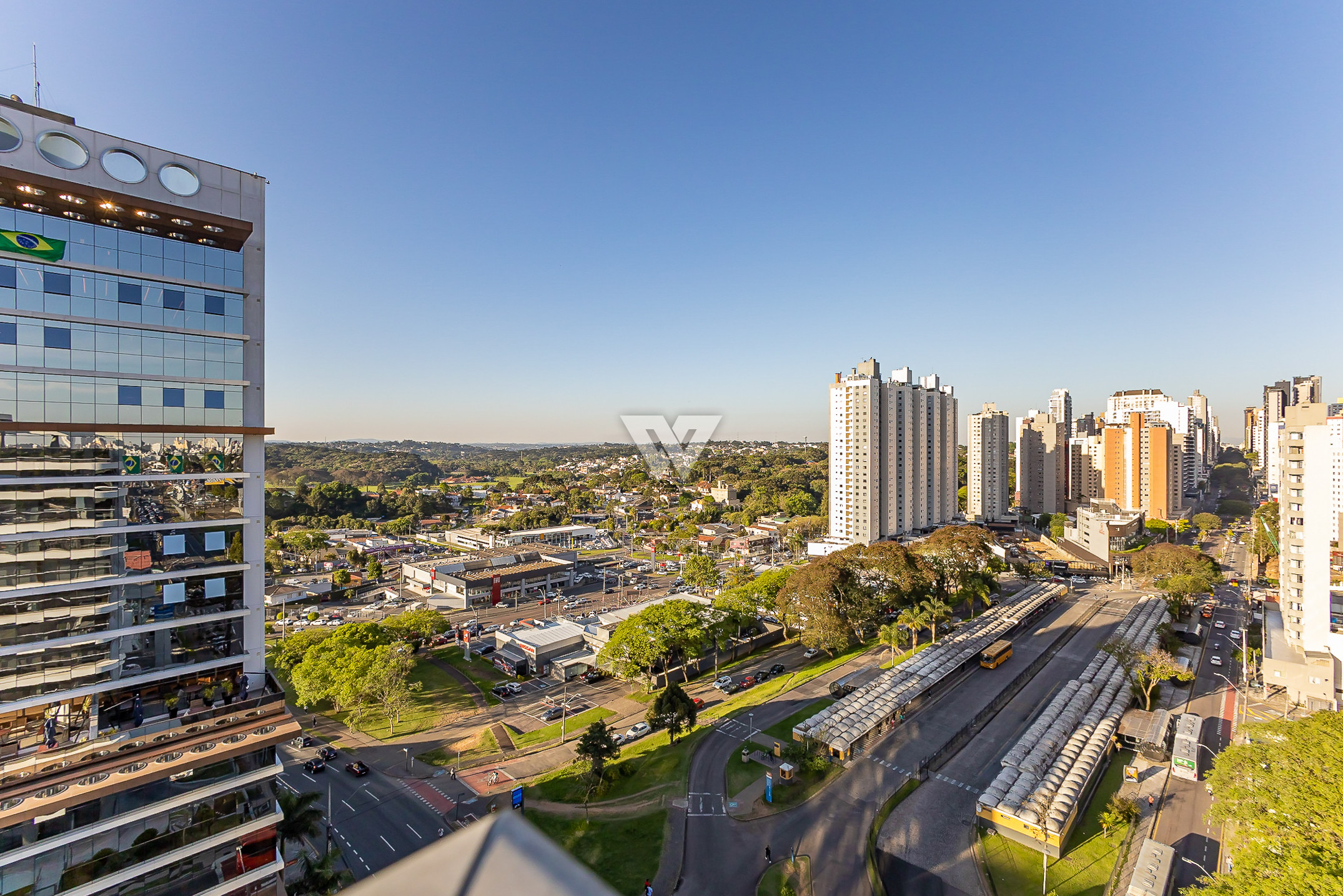 Localizada em frente a um terminal de ônibus e de fácil acesso ao centro da cidade, a poucos metros do Parque Barigui.