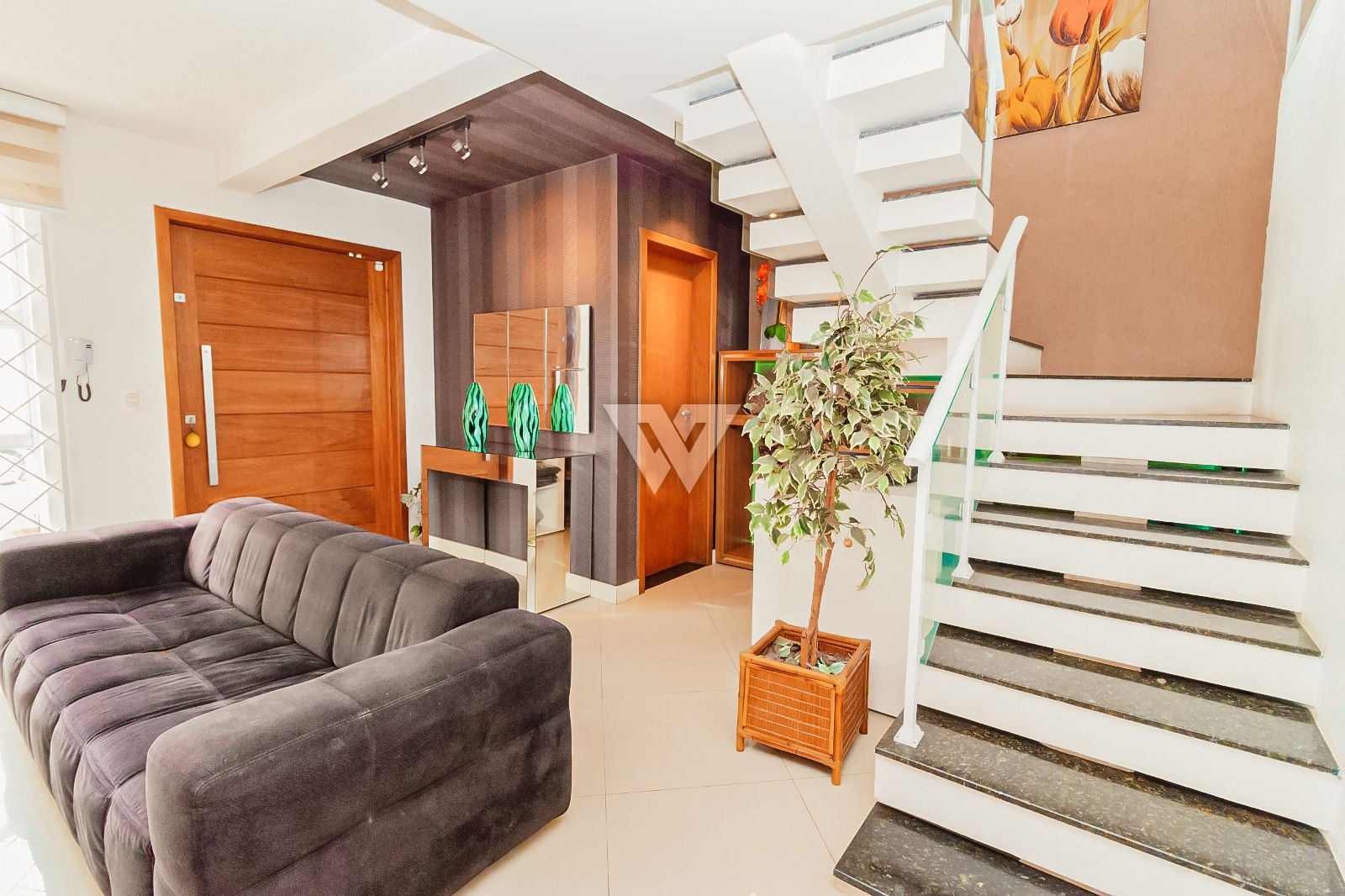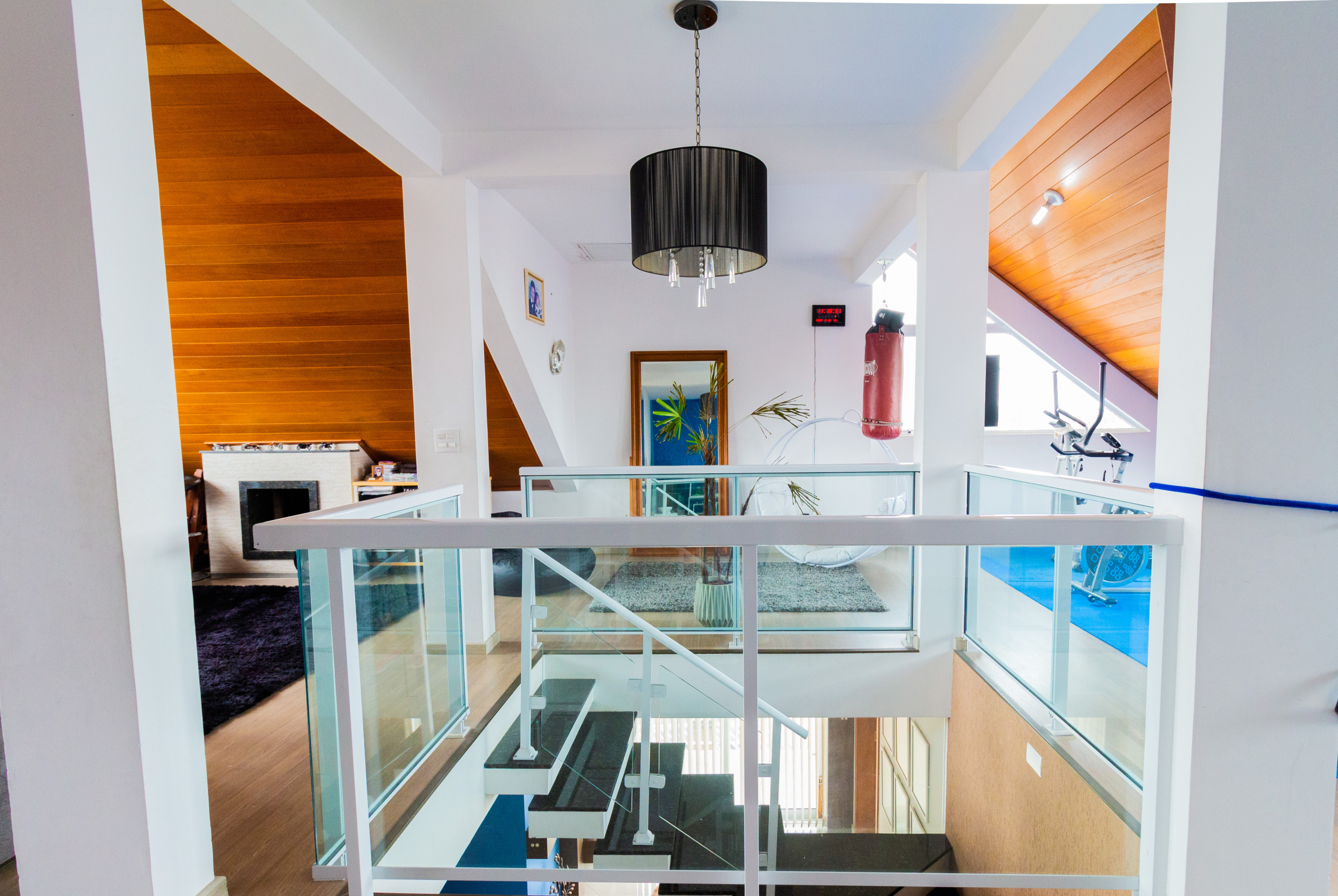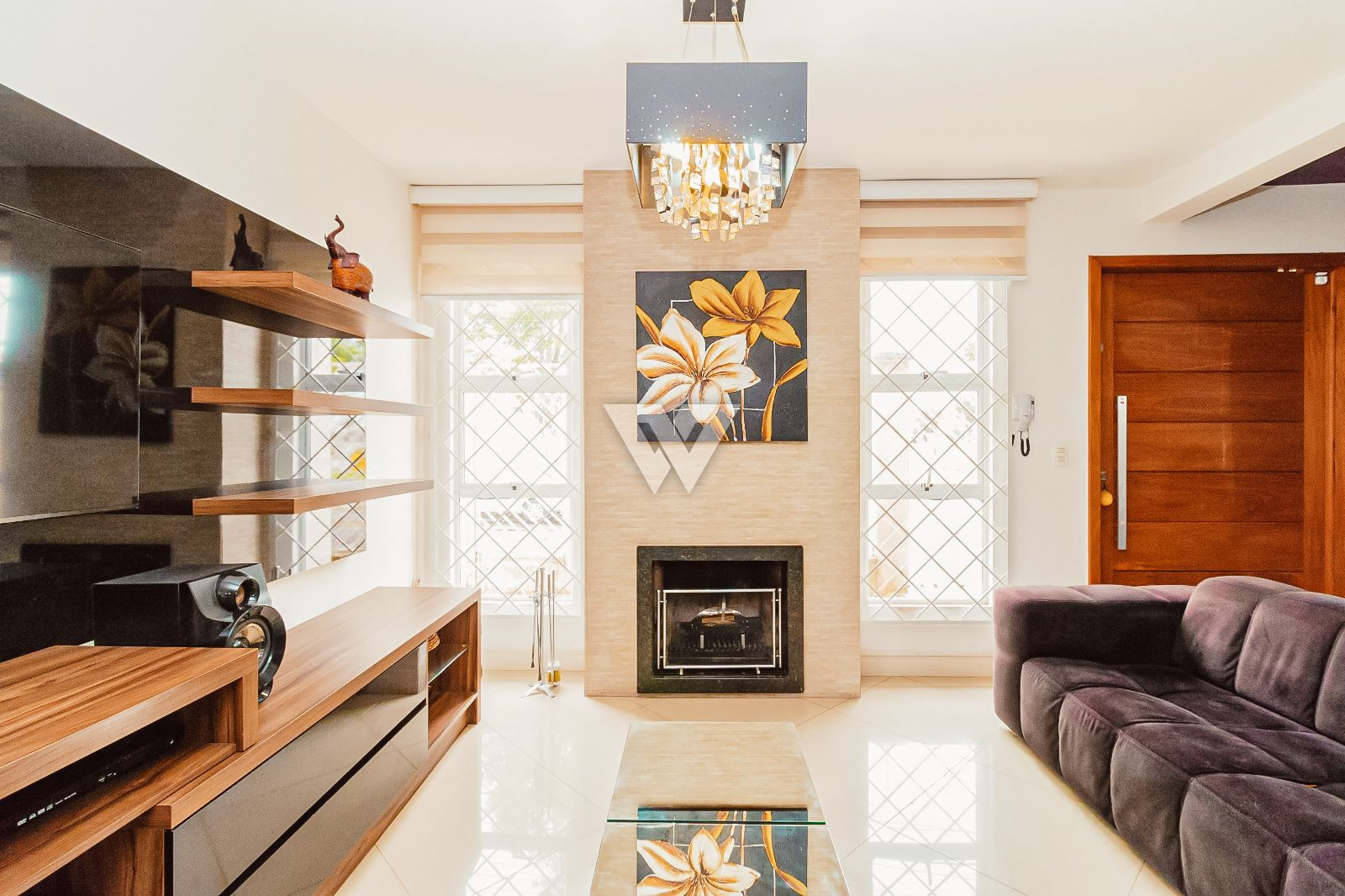 - Sala ampla com lareira e lavabo;