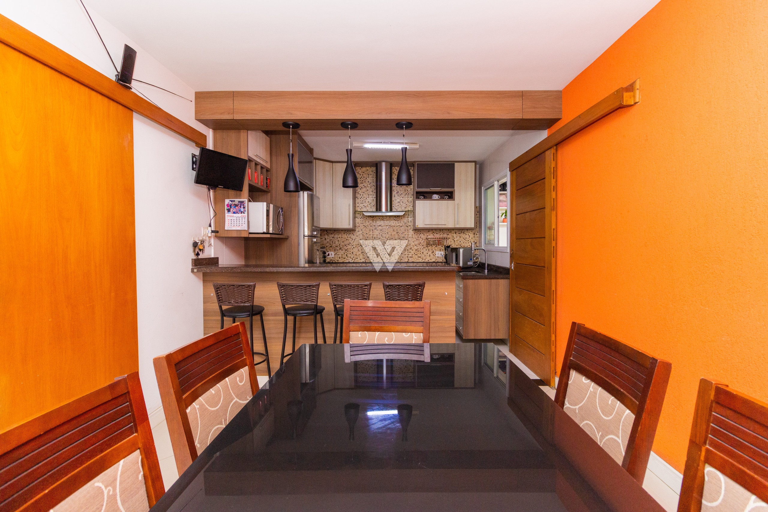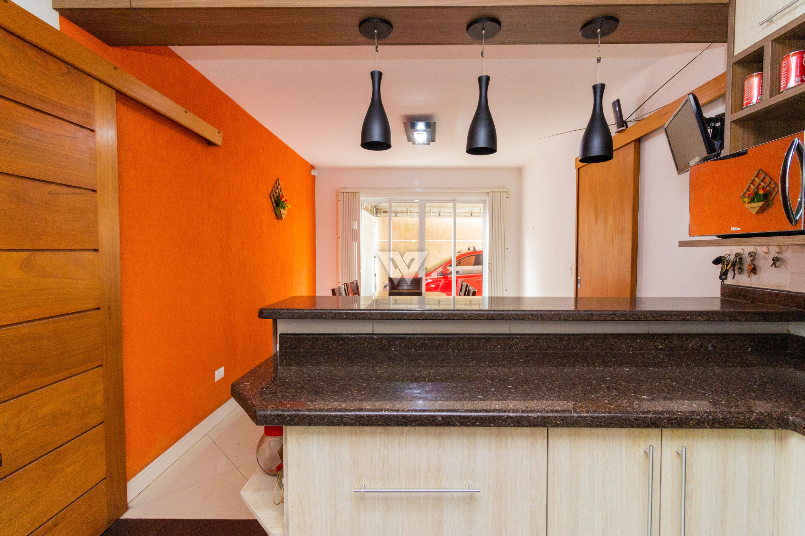 - Cozinha com armários e copa anexa;